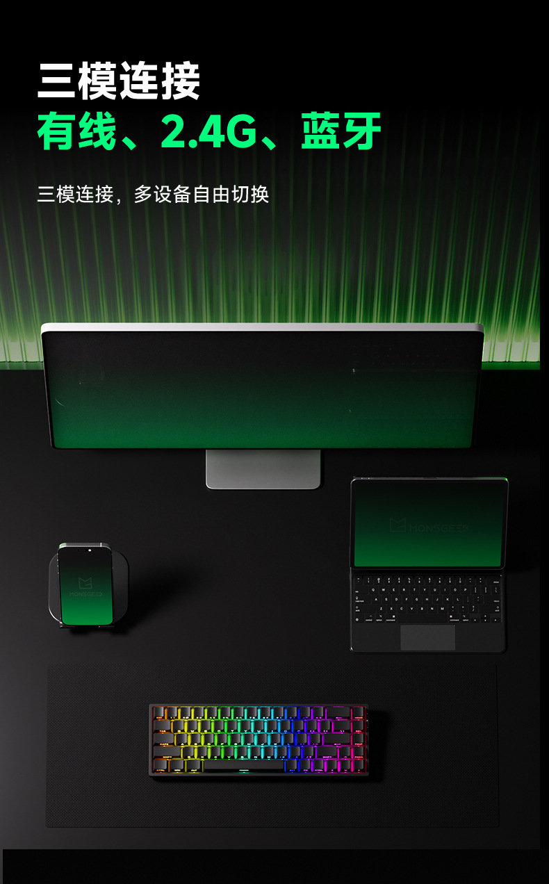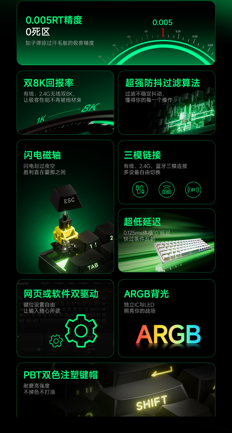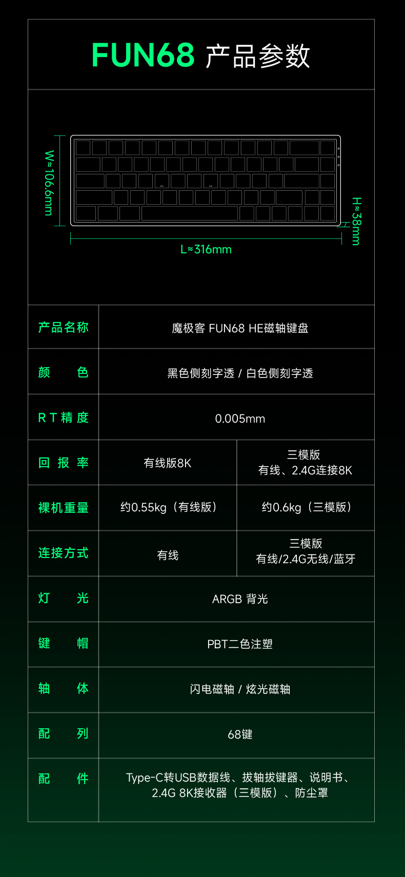 FUN68机械键盘磁轴蓝牙无线三模RT0.01ARGB电竞游戏