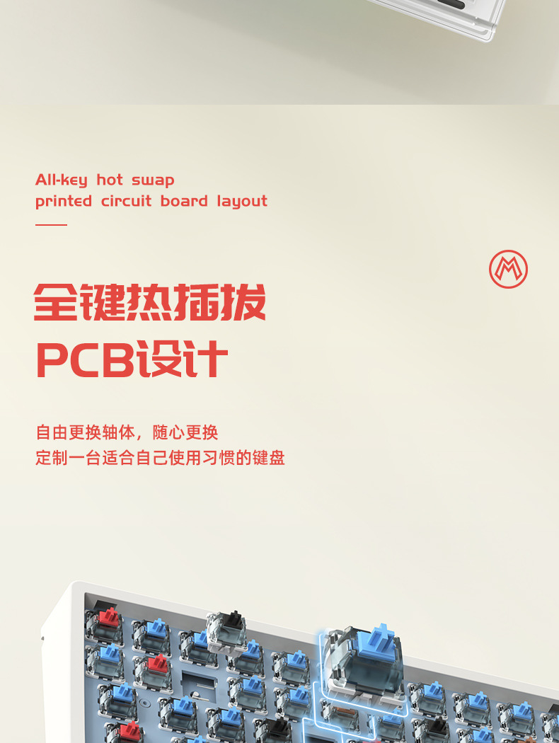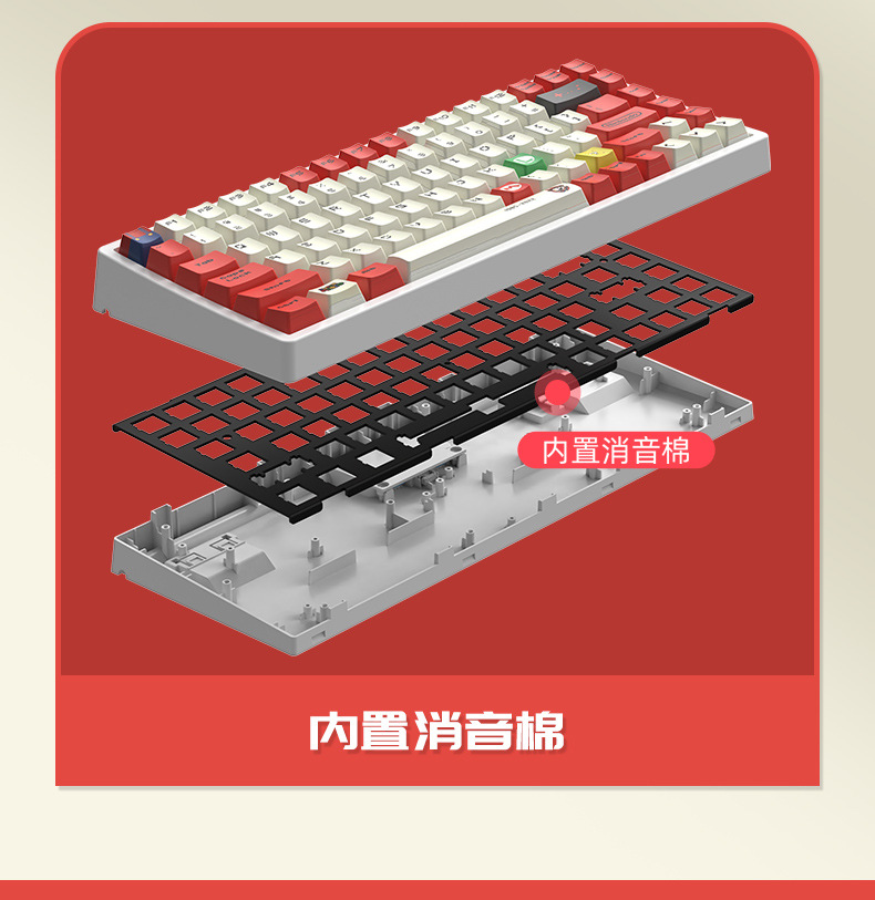 - 84键三模:白底-仅套件-RGB灯(不含键帽,不含轴体)