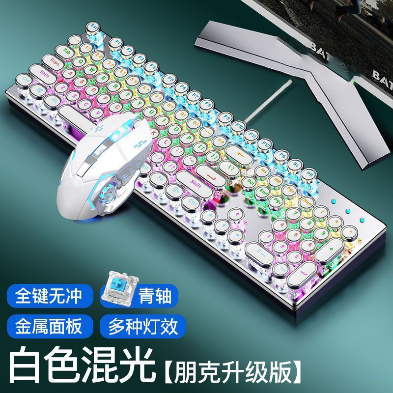 朋克高颜值有线机械键盘套装女生圆键电脑青轴游戏电竞通用两件套