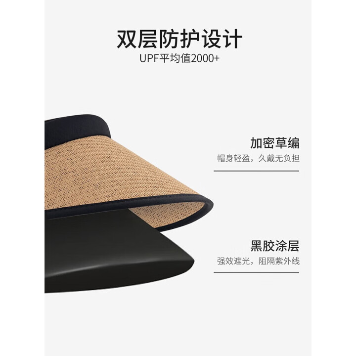 回力草编帽子黑胶空顶防晒帽防紫外线遮阳凉帽