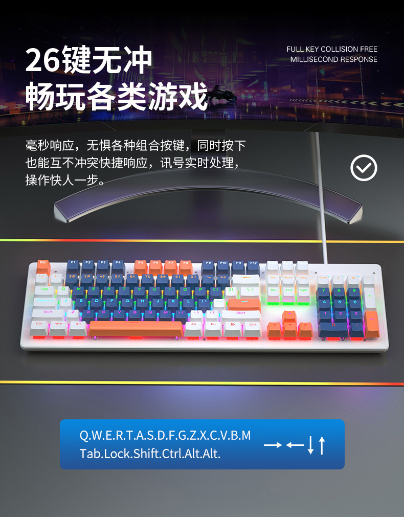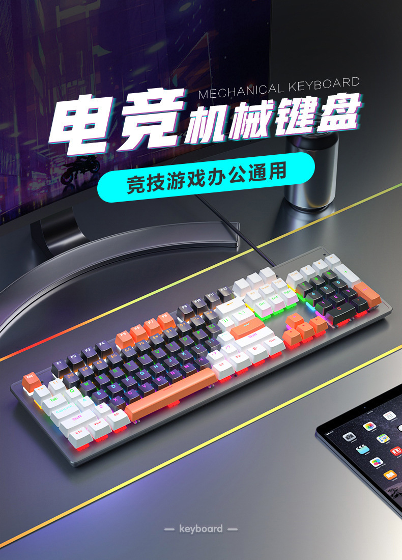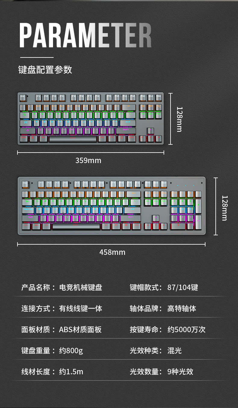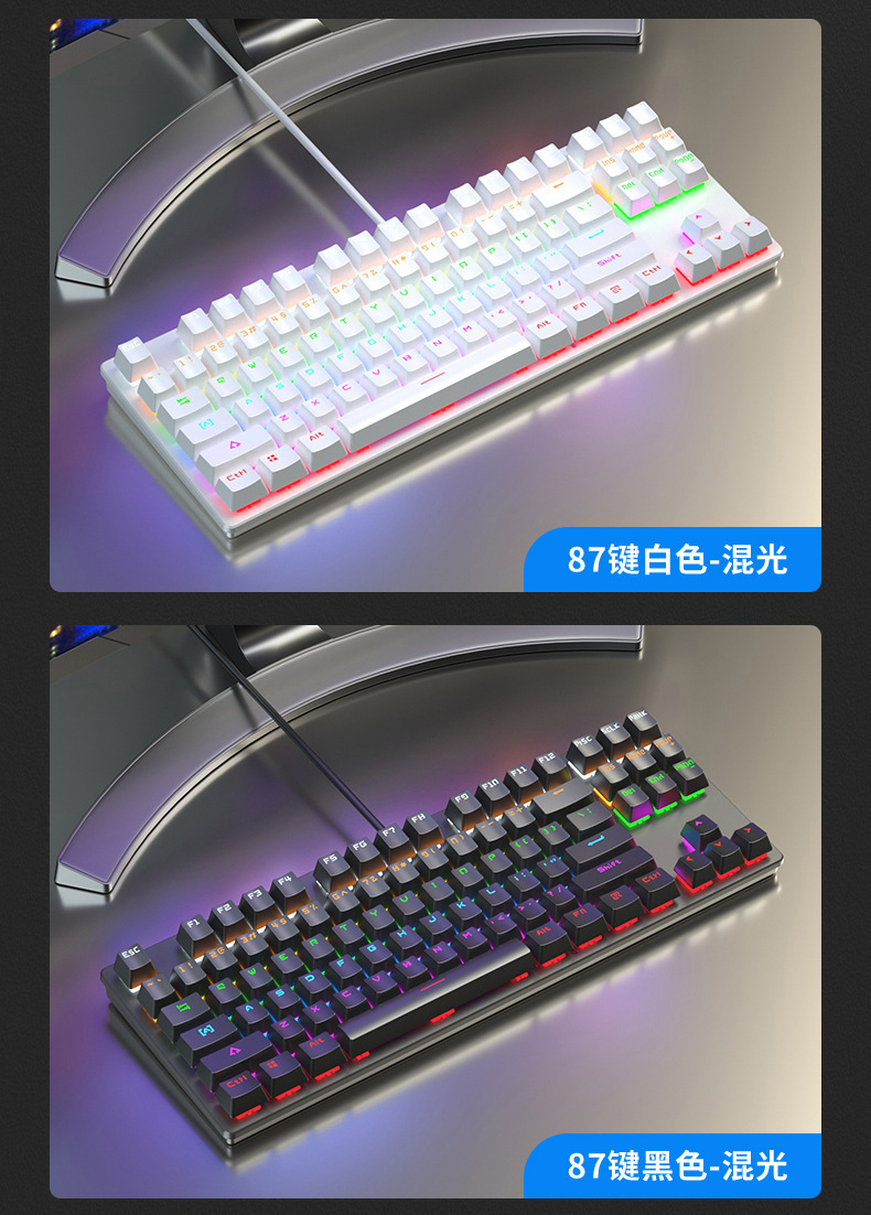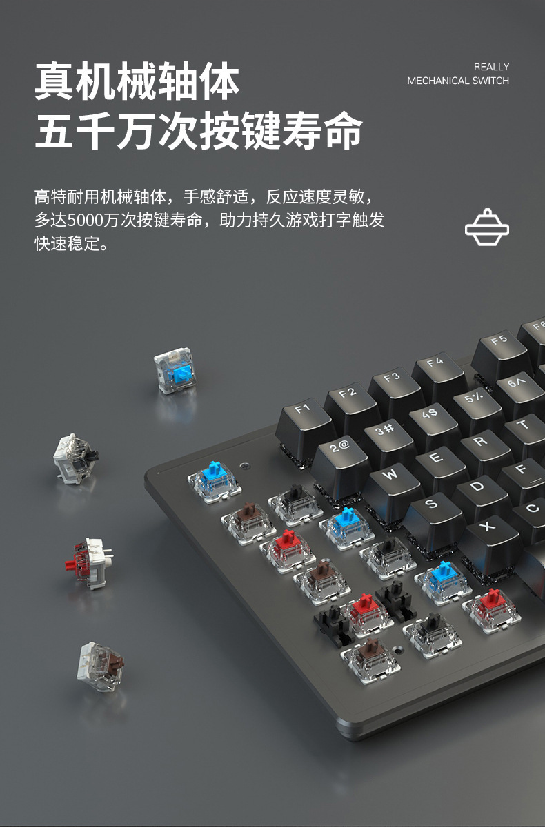 真机械键盘87/104键青黑红茶轴有线游戏CF电竞电脑笔记本办公