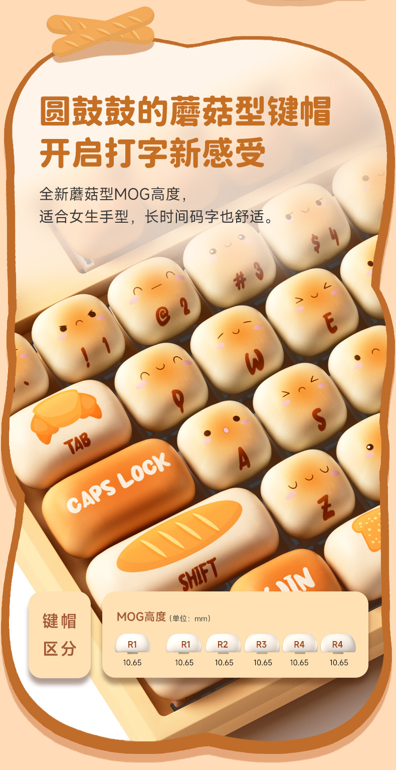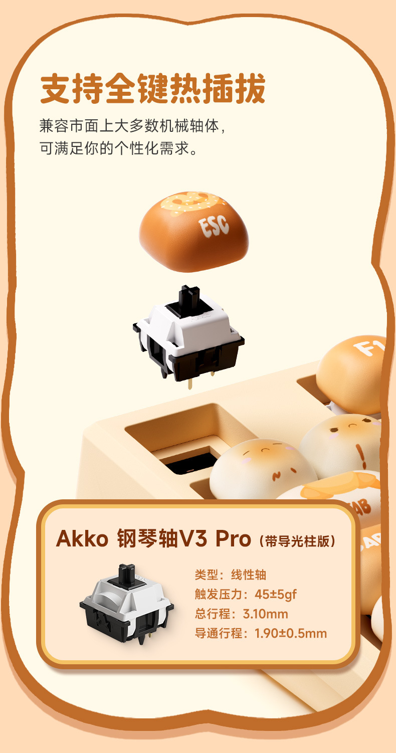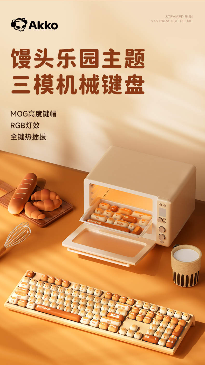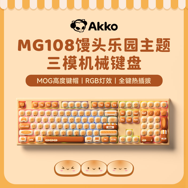 AKKO馒头乐园机械键盘PBT热升华三模蓝牙无线小馒头笔办公键盘钢琴轴