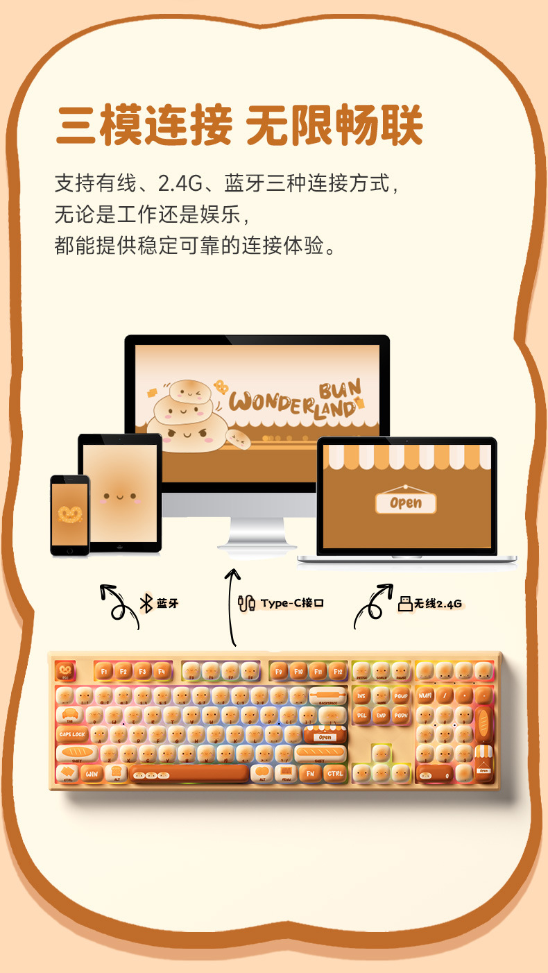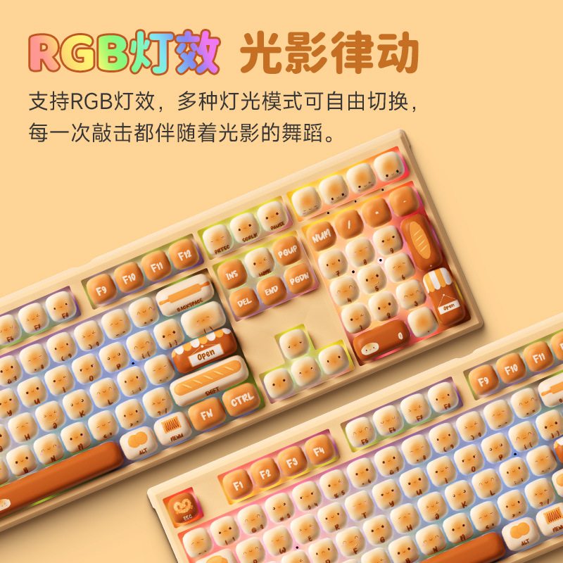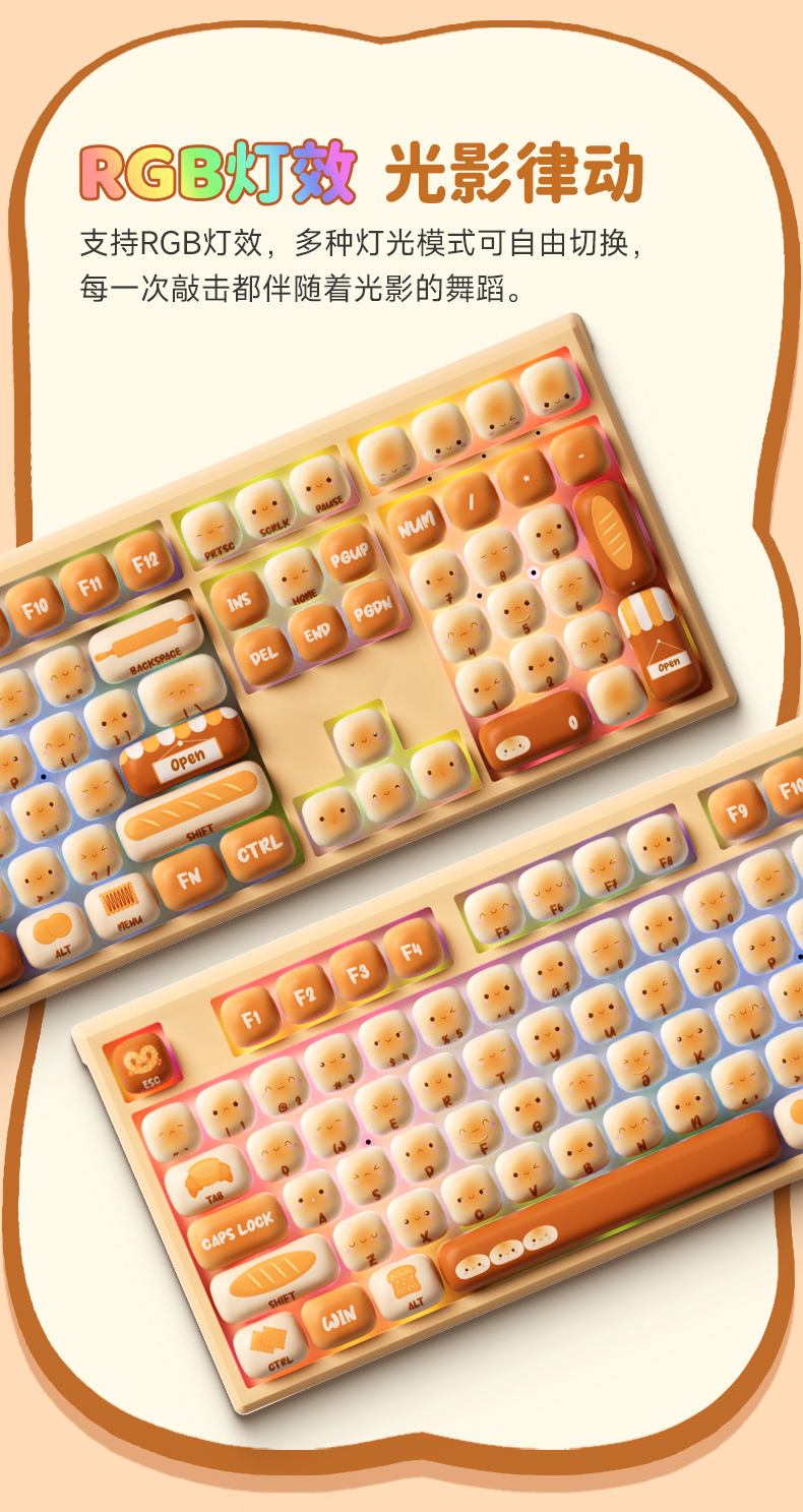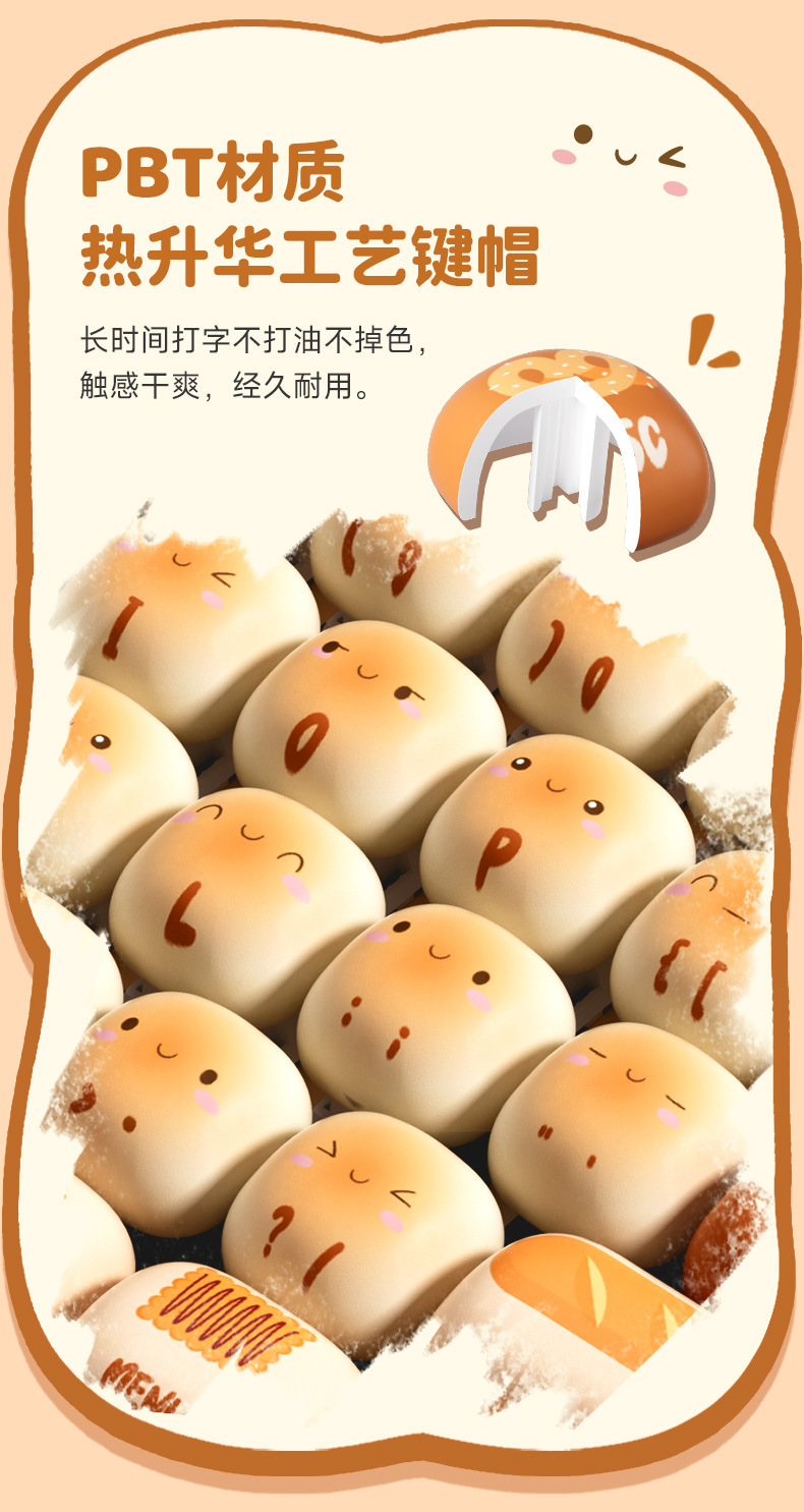 AKKO馒头乐园机械键盘PBT热升华三模蓝牙无线小馒头笔办公键盘钢琴轴