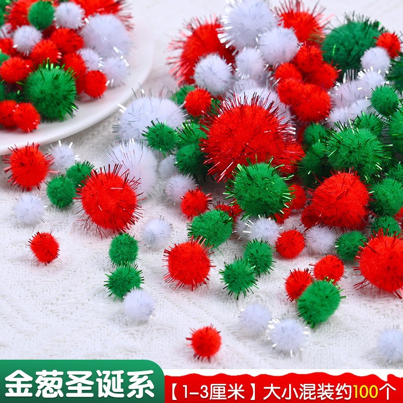 - 金葱圣诞系毛球【1-3厘米】大小混装约100个