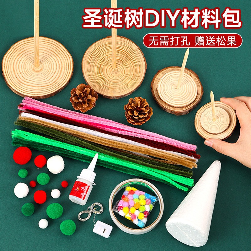 圣诞树diy配件木质底座材料包手工自制扭扭棒银杏叶木头支架装饰