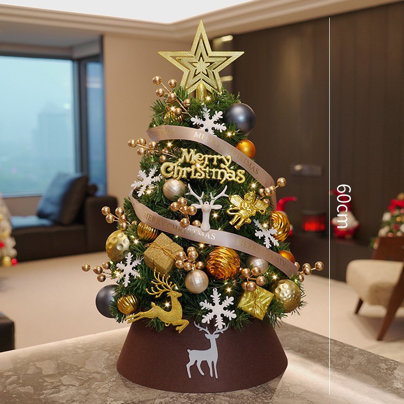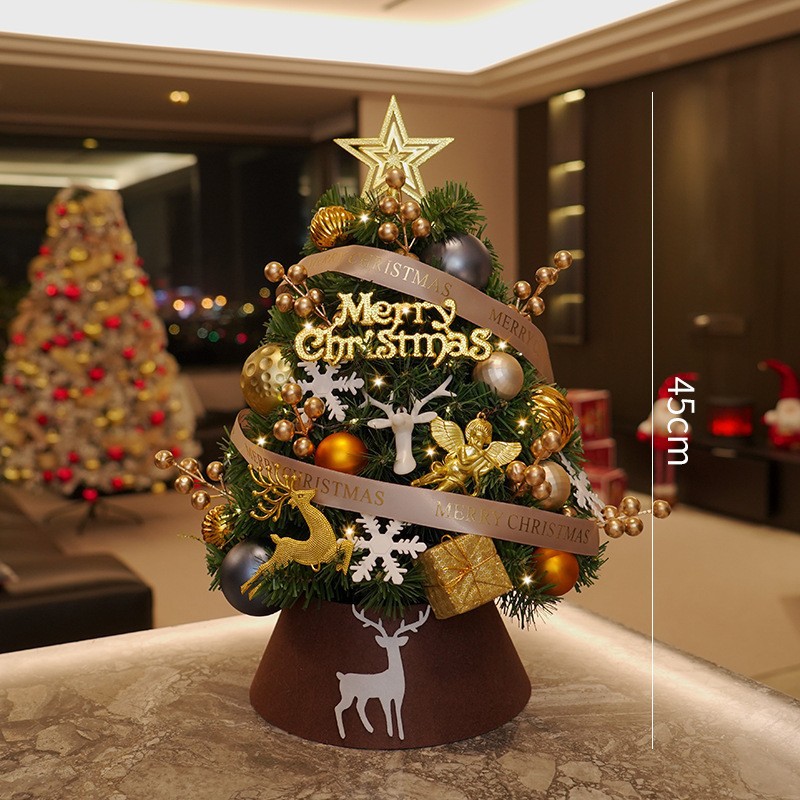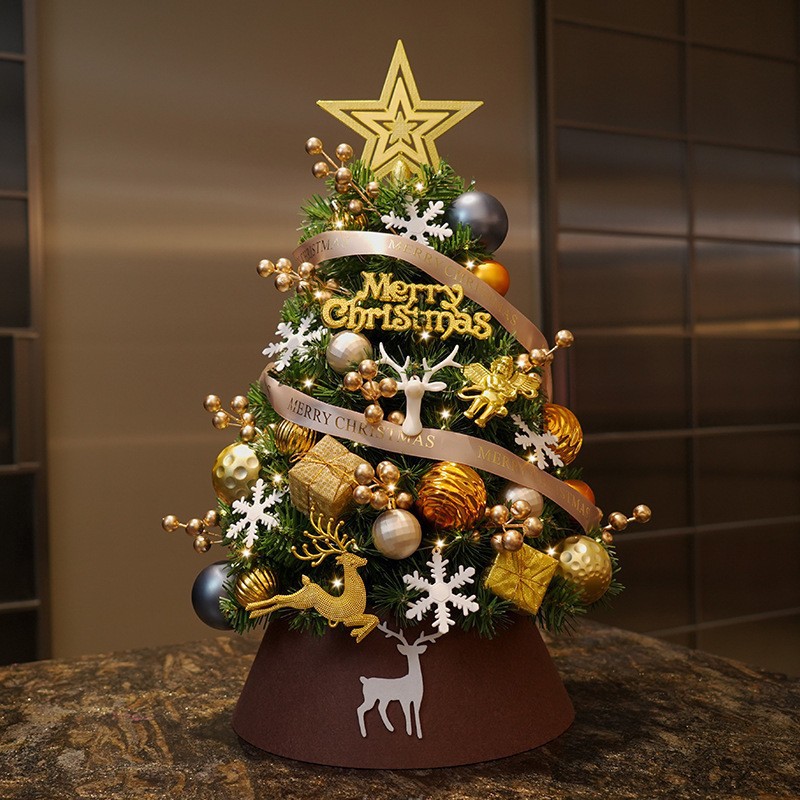 迷你圣诞树套装摆设diy圣诞节桌面家用金咖圣诞树装饰小摆件