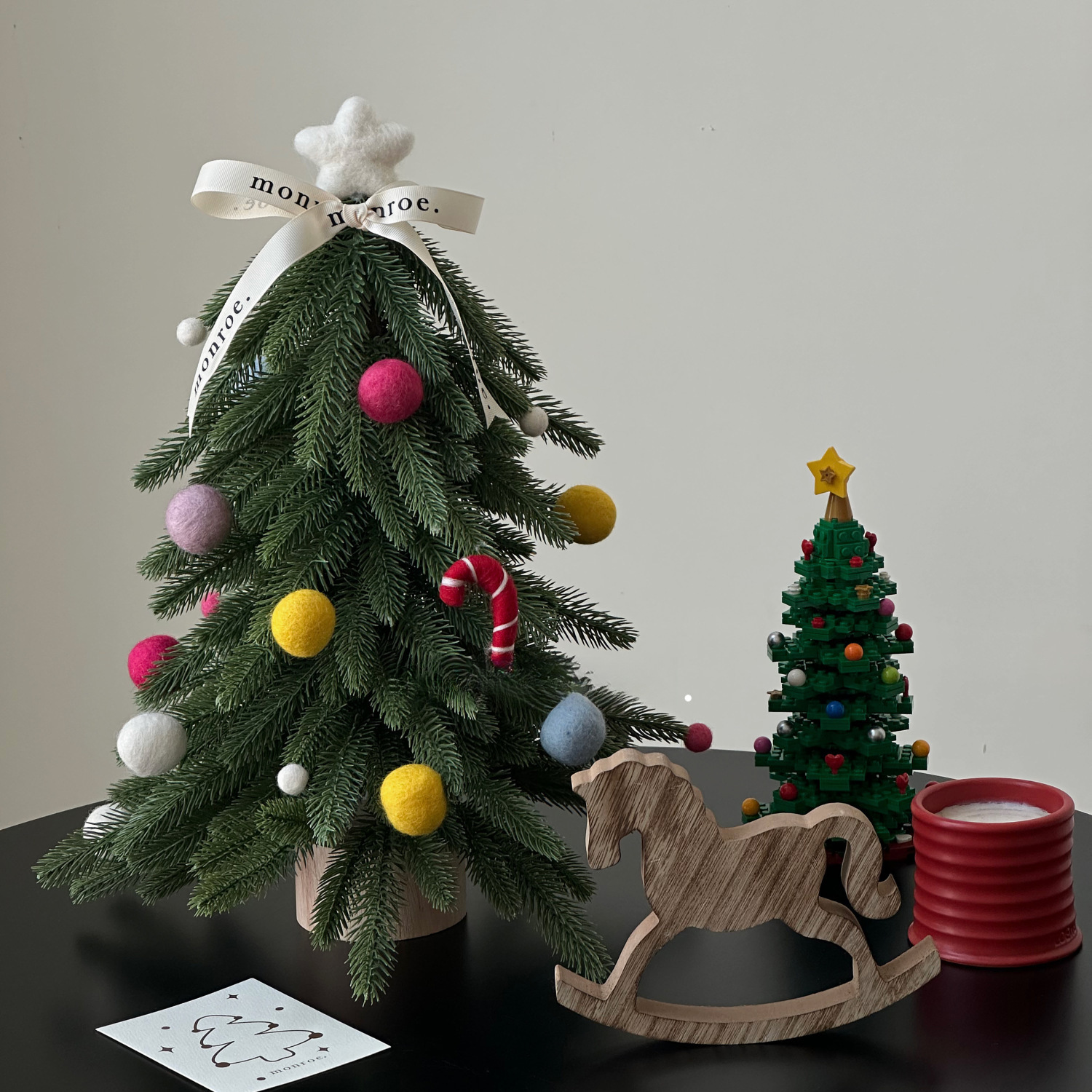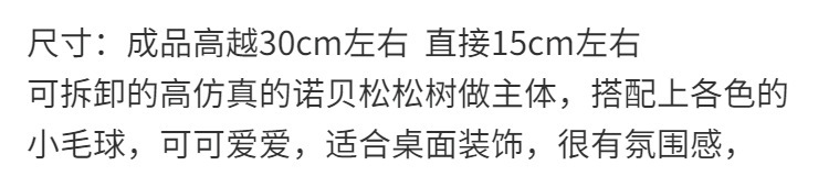 白星星圣诞树丝带随机【高约29cm】送灯串~树为成品【毛球需要手动安装-树枝可拆卸】