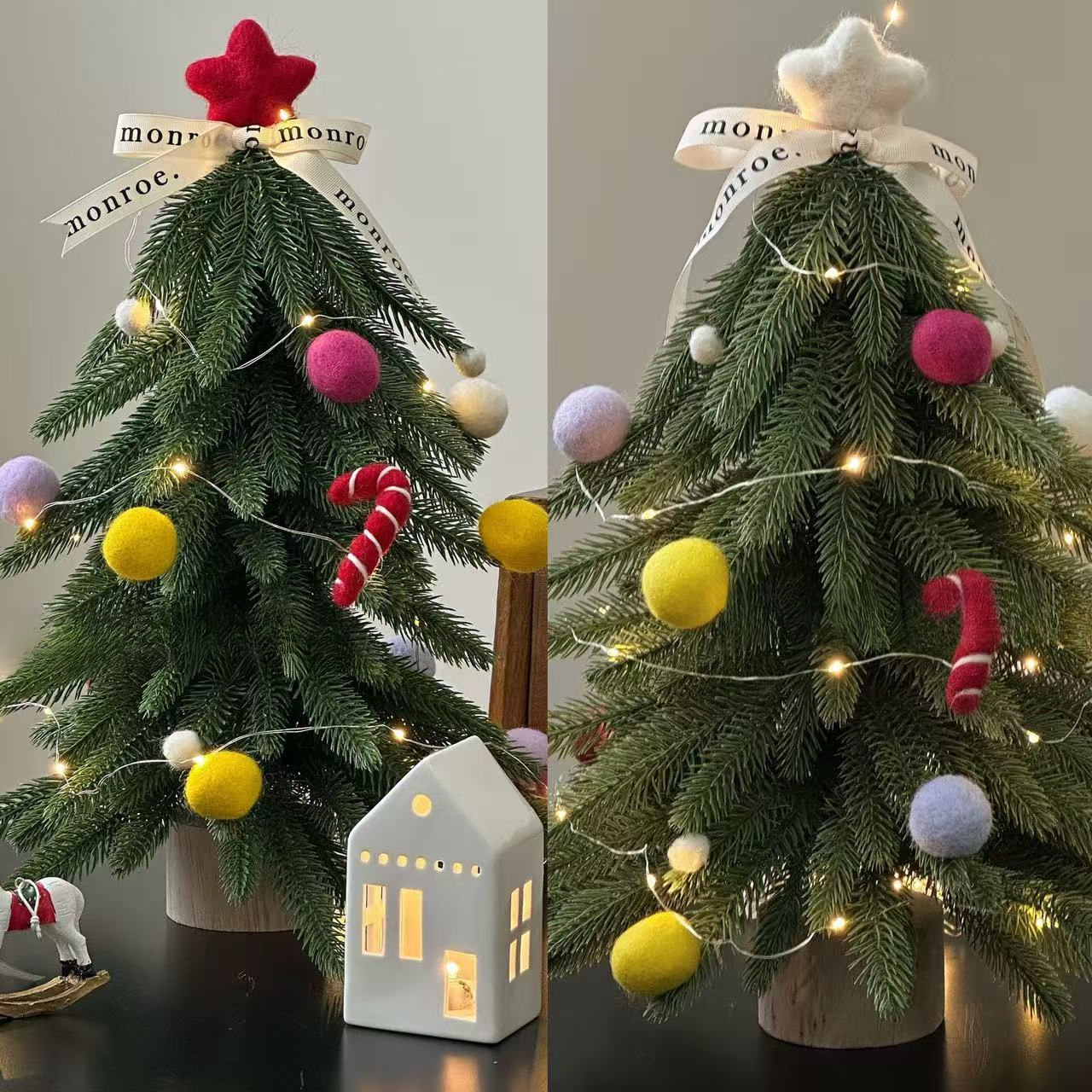 【红星星+白星星】毛球圣诞树-送2个灯串~树为成品【毛球需要手动安装-树枝可拆卸】