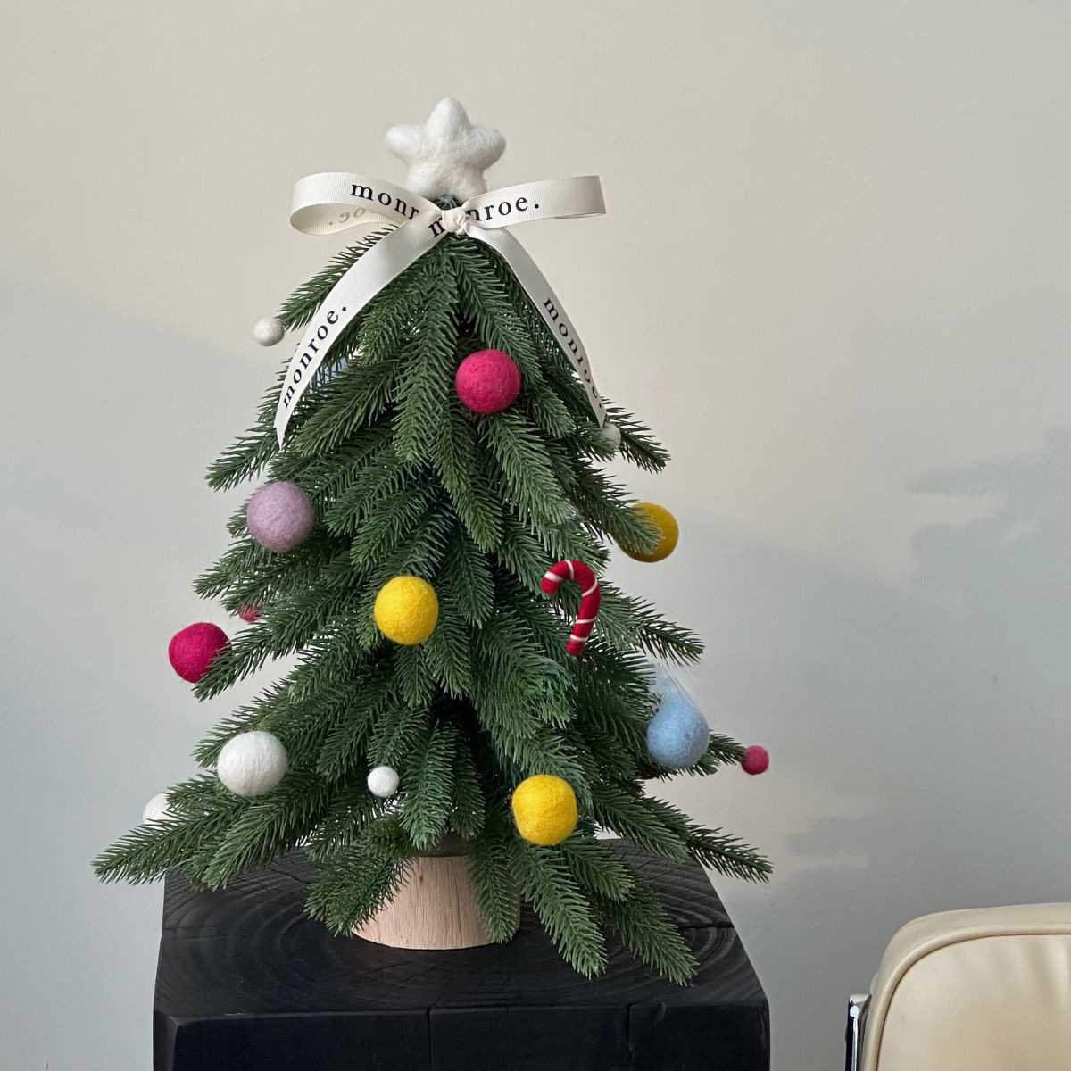 新款圣诞装饰品植绒粘珠子迷你圣诞树圣诞节摆件桌面小圣诞树