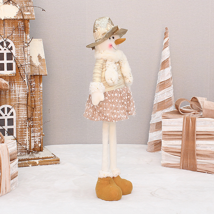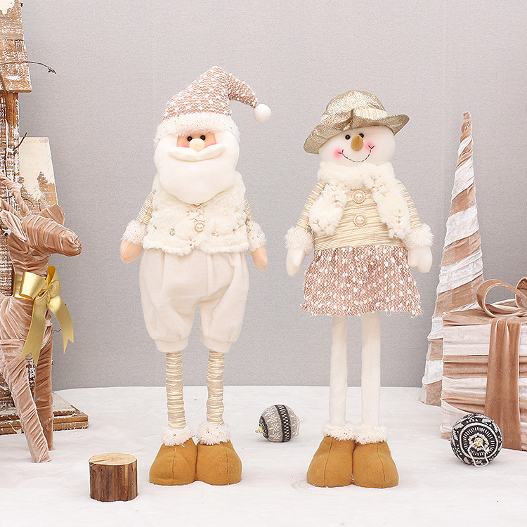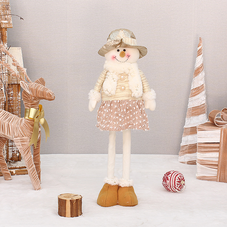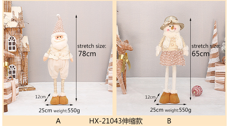 65厘米圣诞节装饰用品可伸缩布艺圣诞老人雪人公仔玩偶摆件