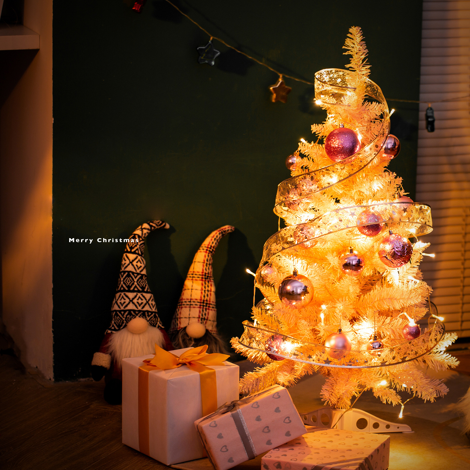圣诞节绿色圣诞树粉色桌面圣诞树发光圣诞树商场场景圣诞树家用