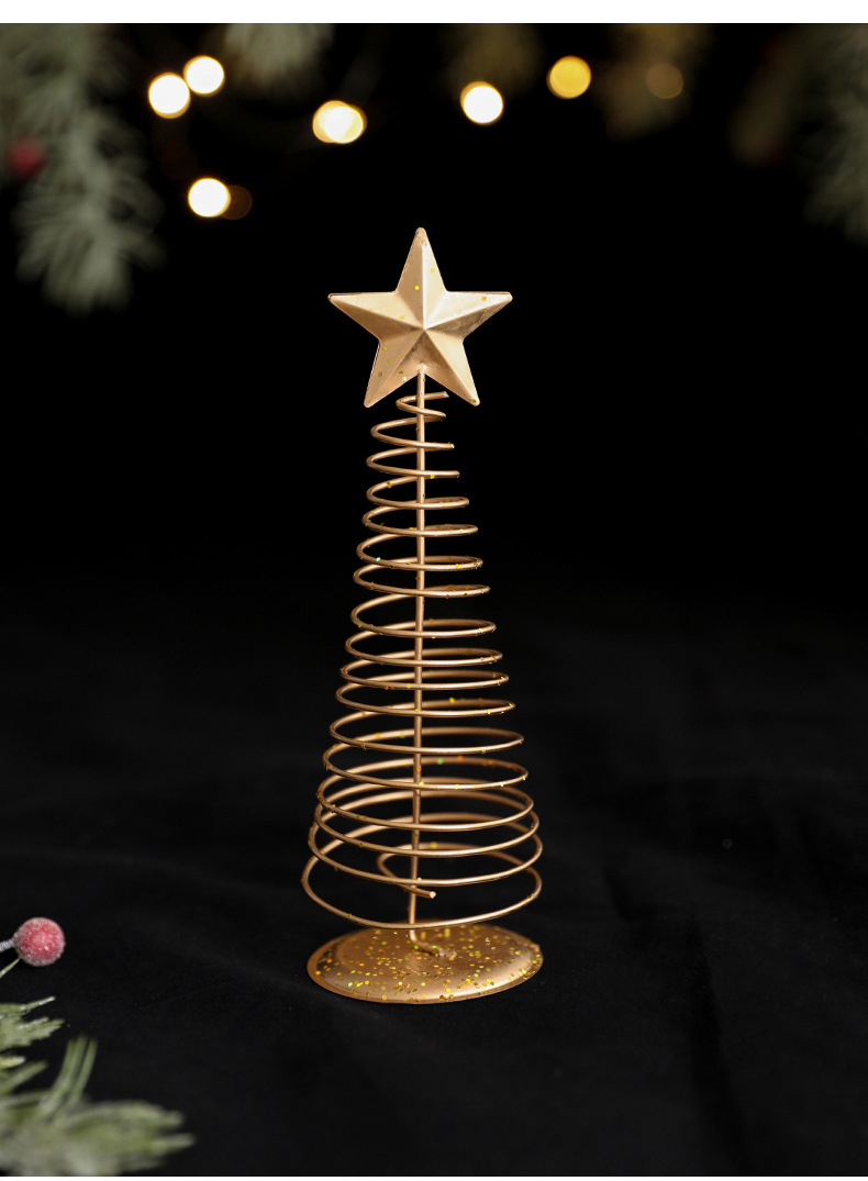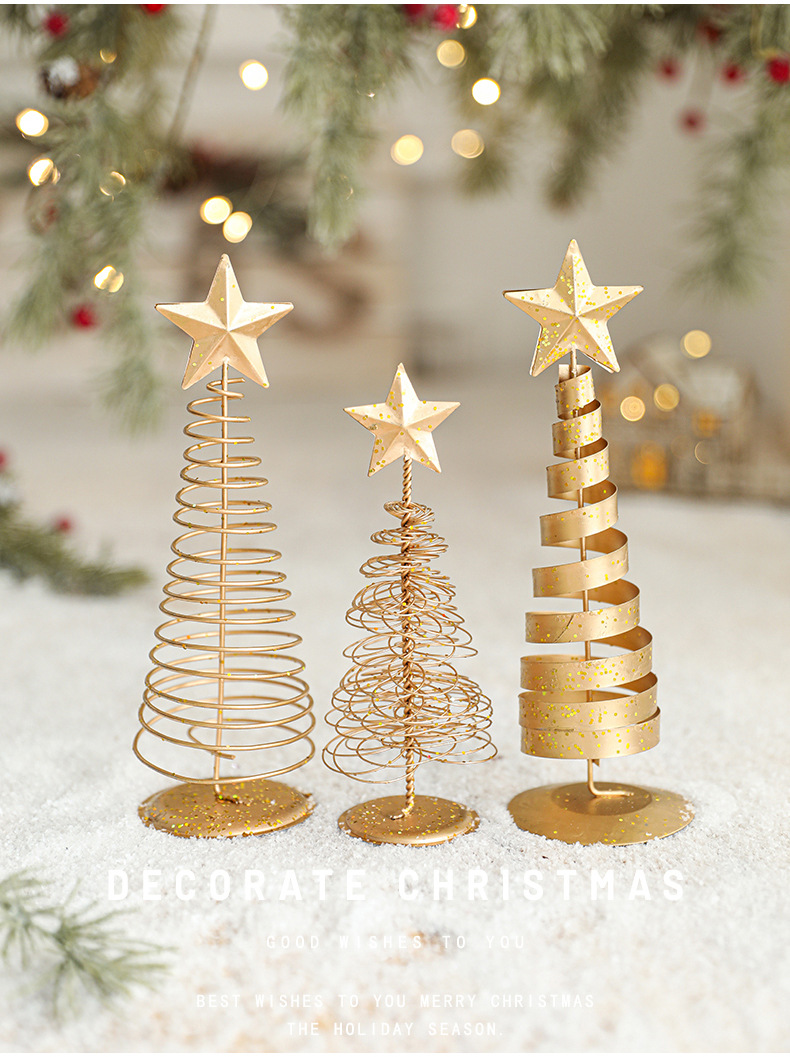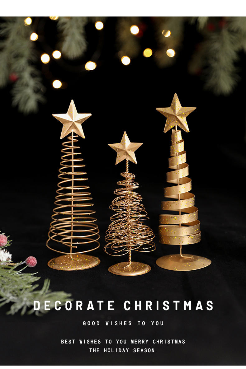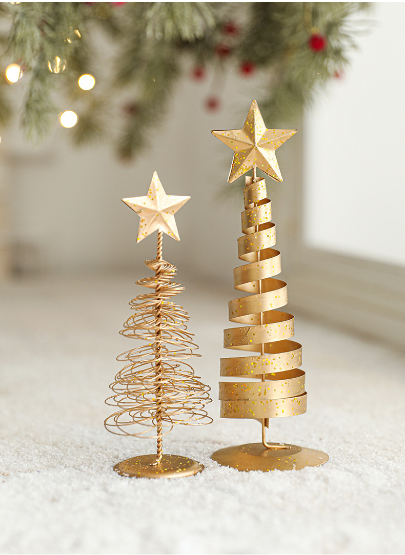 金色铁艺圣诞树摆件铁制五角星迷你小型轻奢桌面摆件装饰