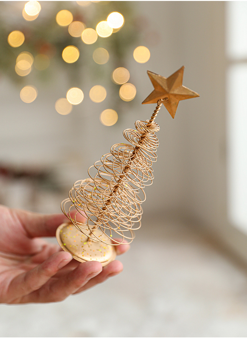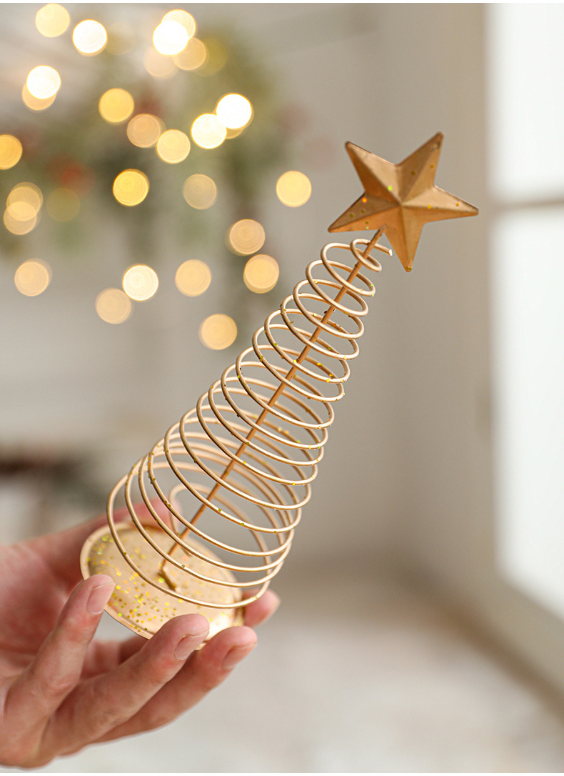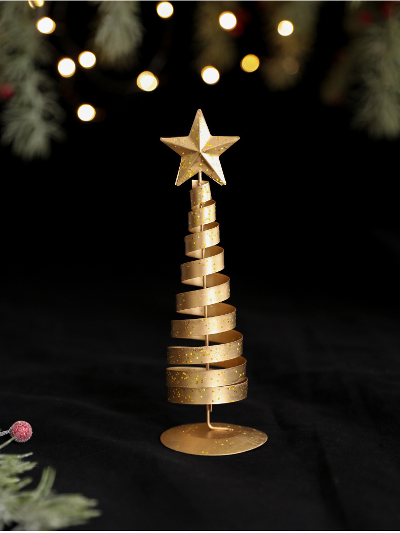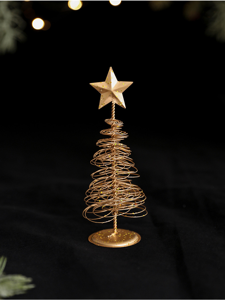 金色铁艺圣诞树摆件铁制五角星迷你小型轻奢桌面摆件装饰