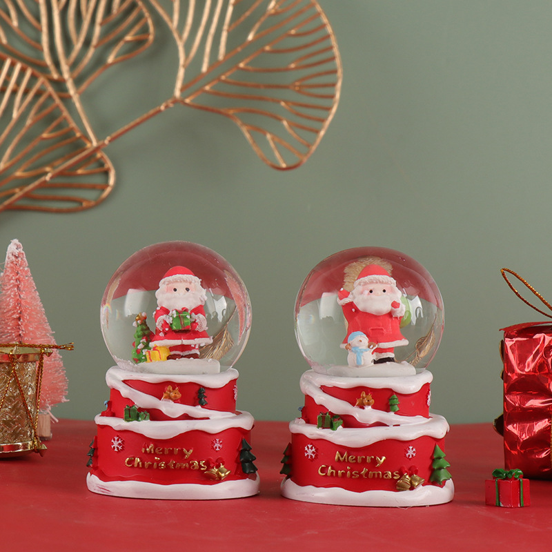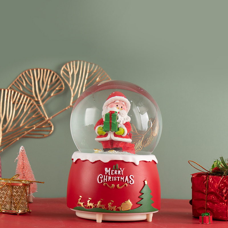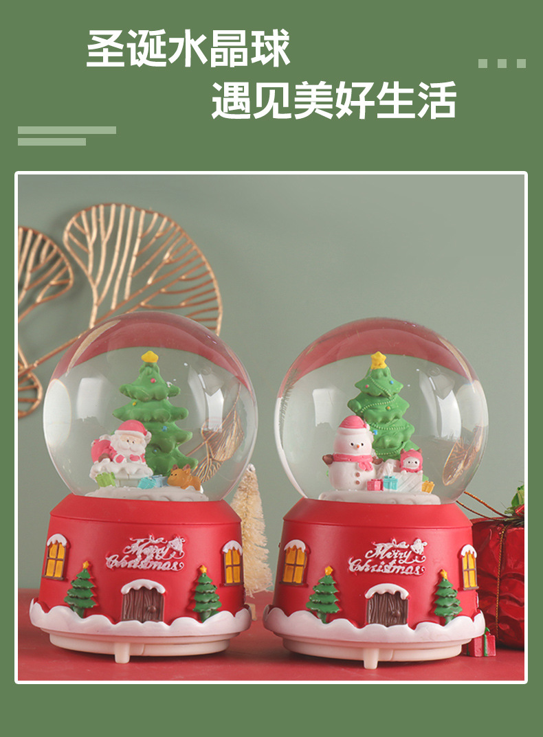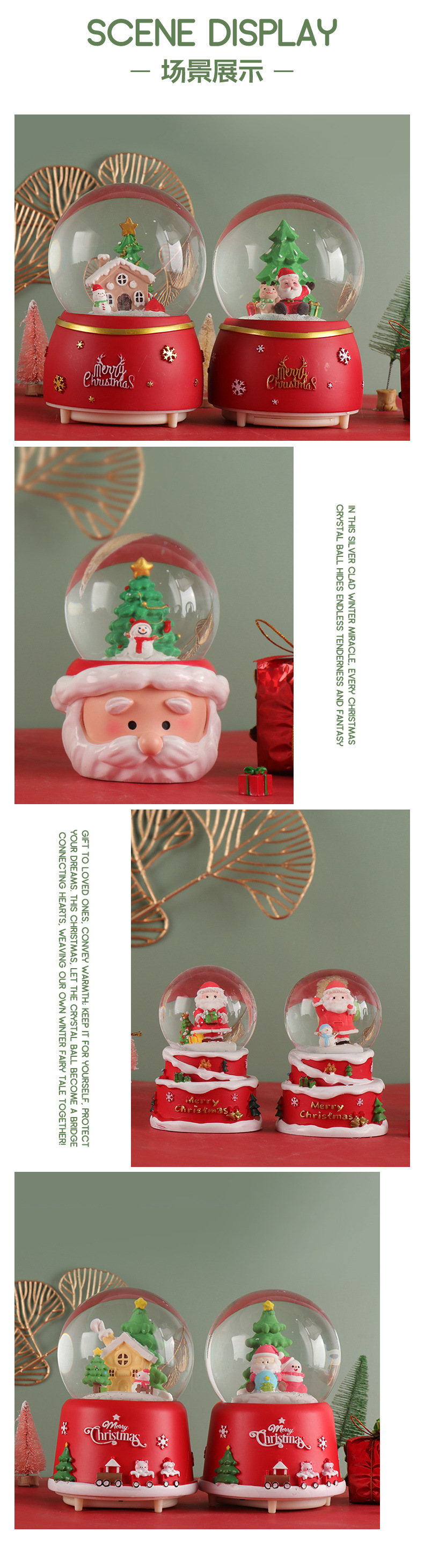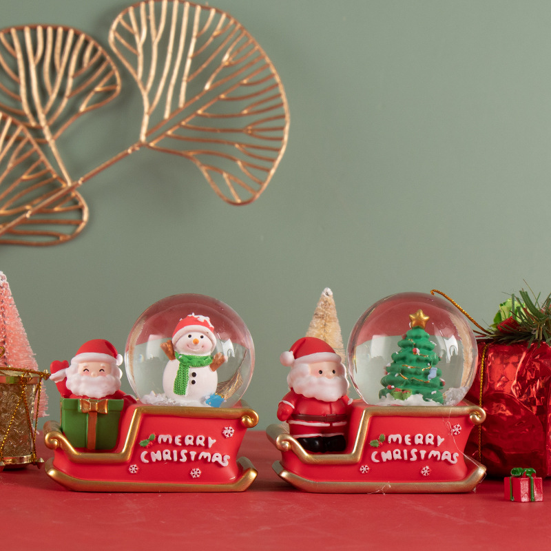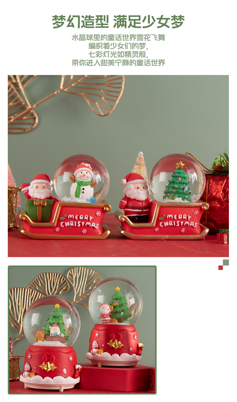2025年新款圣诞老人骑麋鹿水晶球音乐盒桌面装饰品树脂摆件