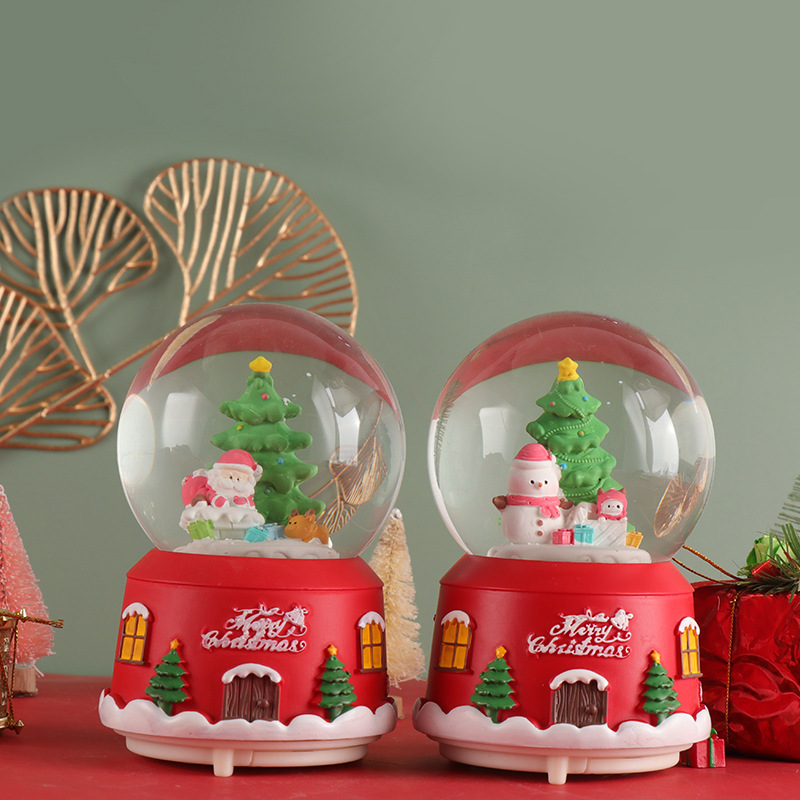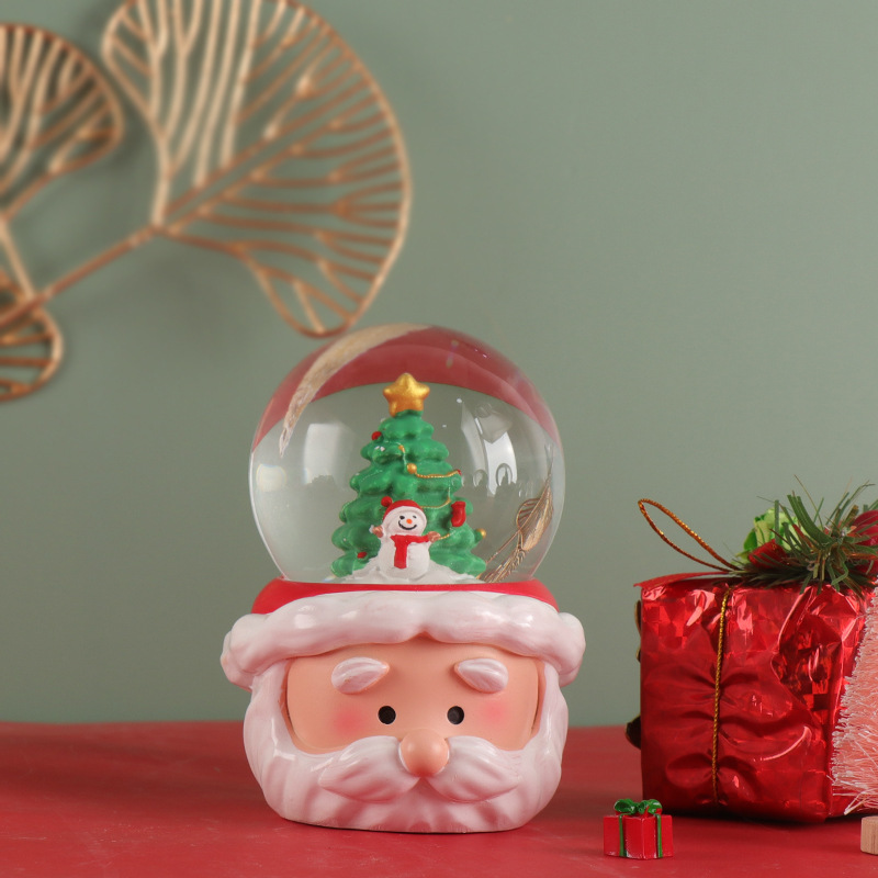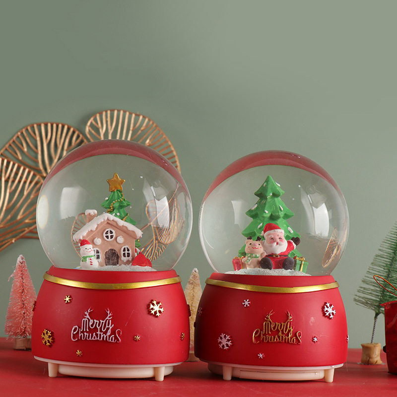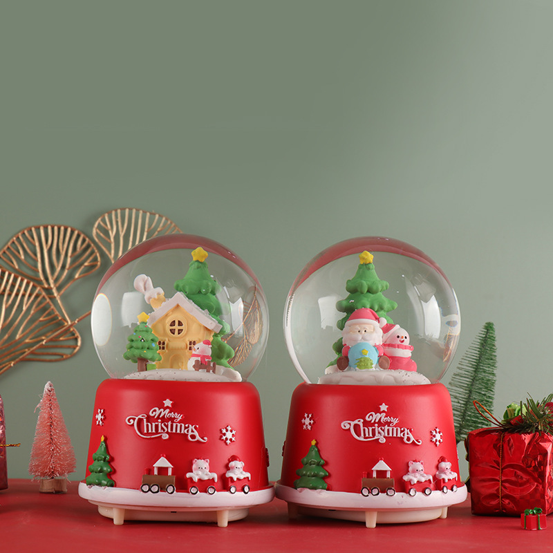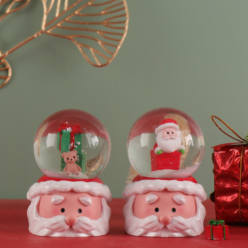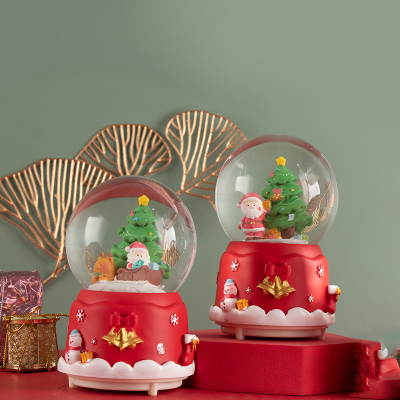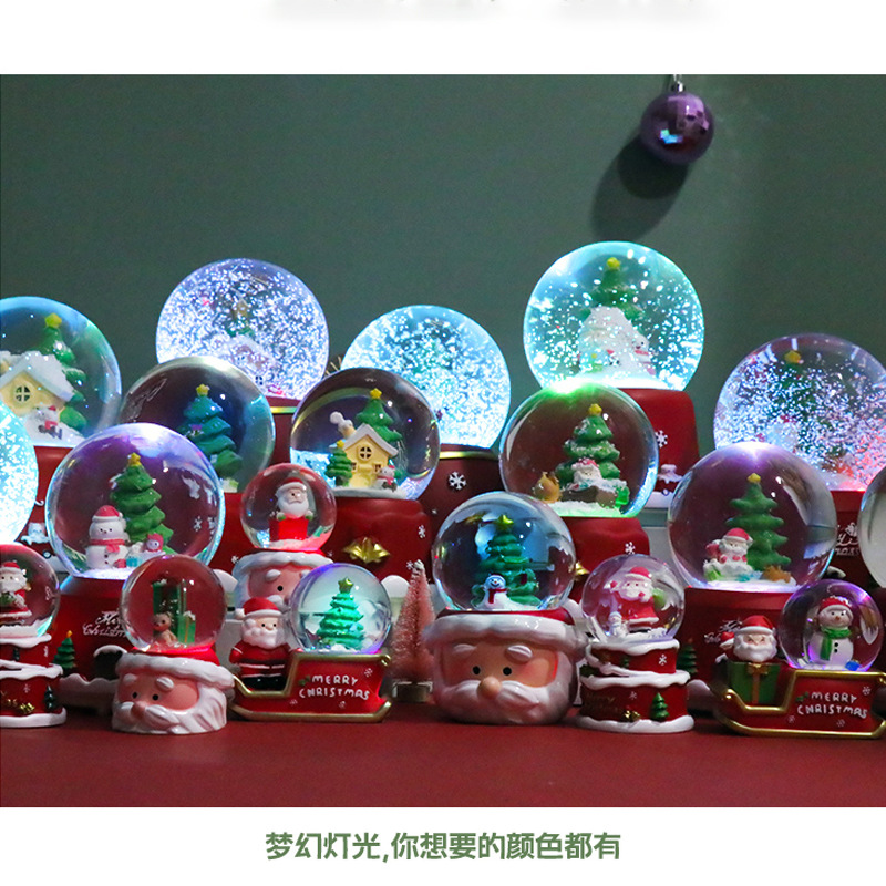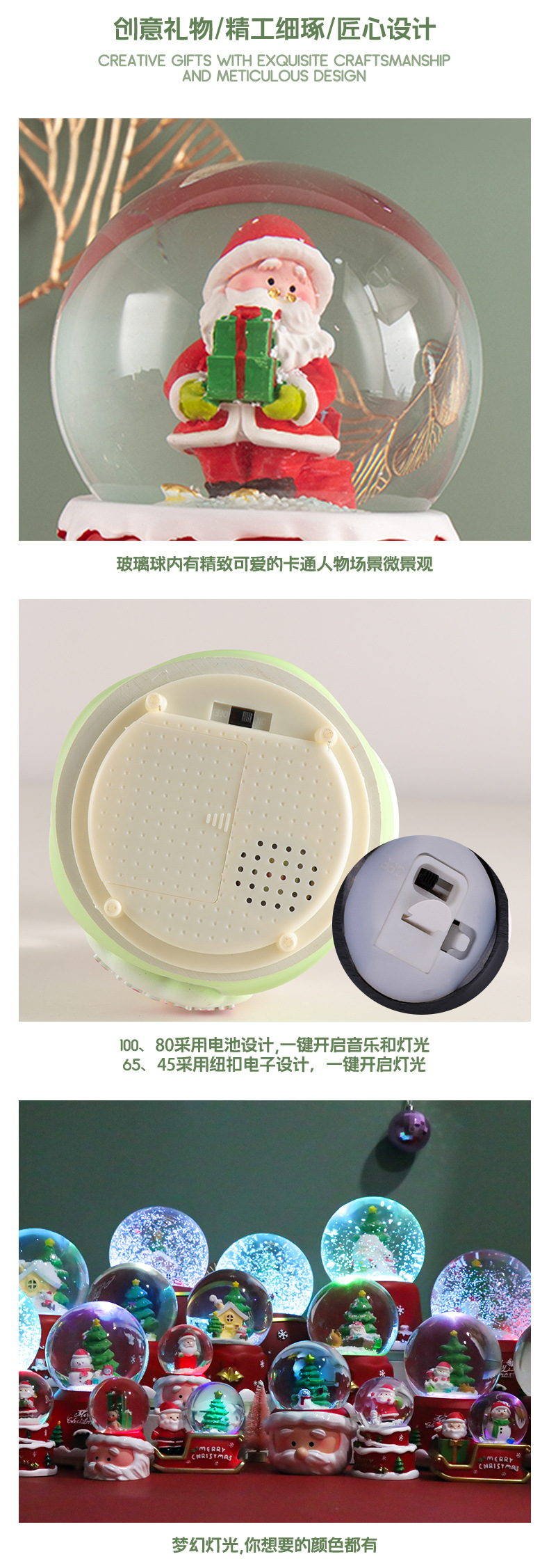 2025年新款圣诞老人骑麋鹿水晶球音乐盒桌面装饰品树脂摆件