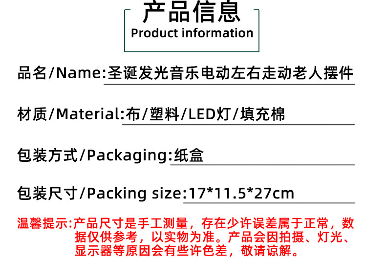 T2-42圣诞发光音乐电动左右走动老人摆件