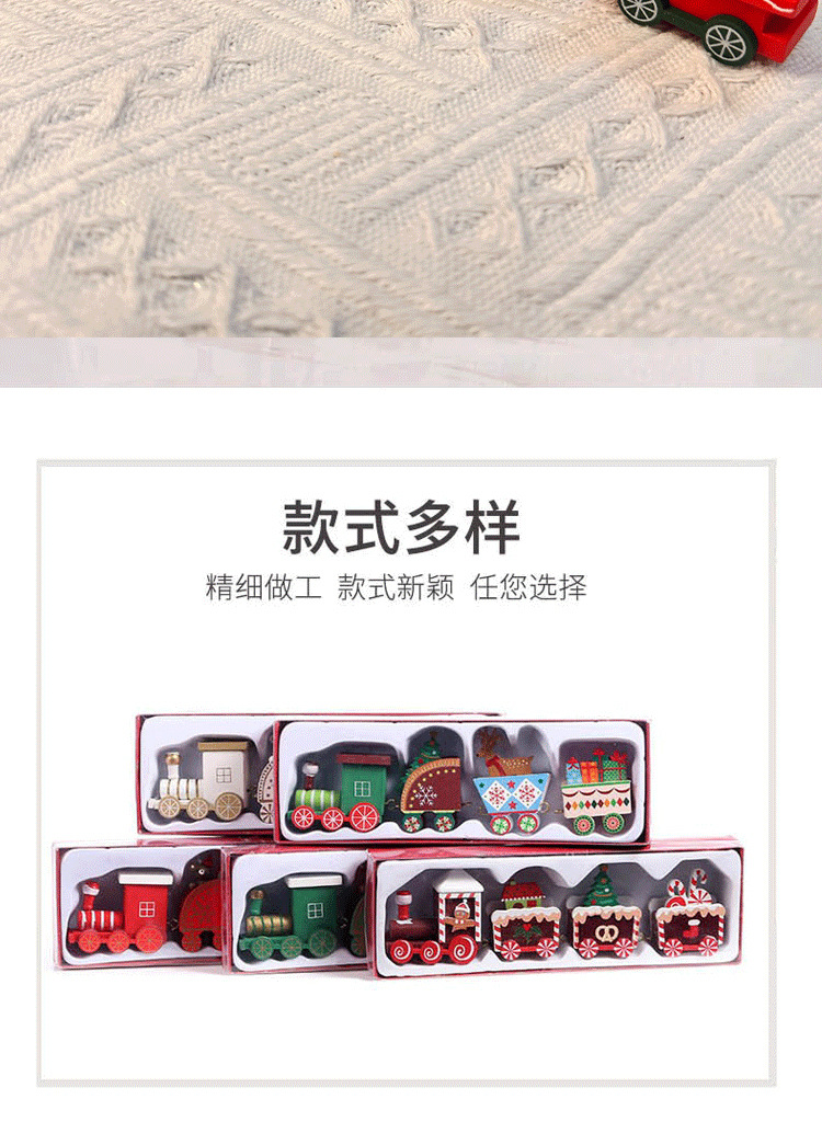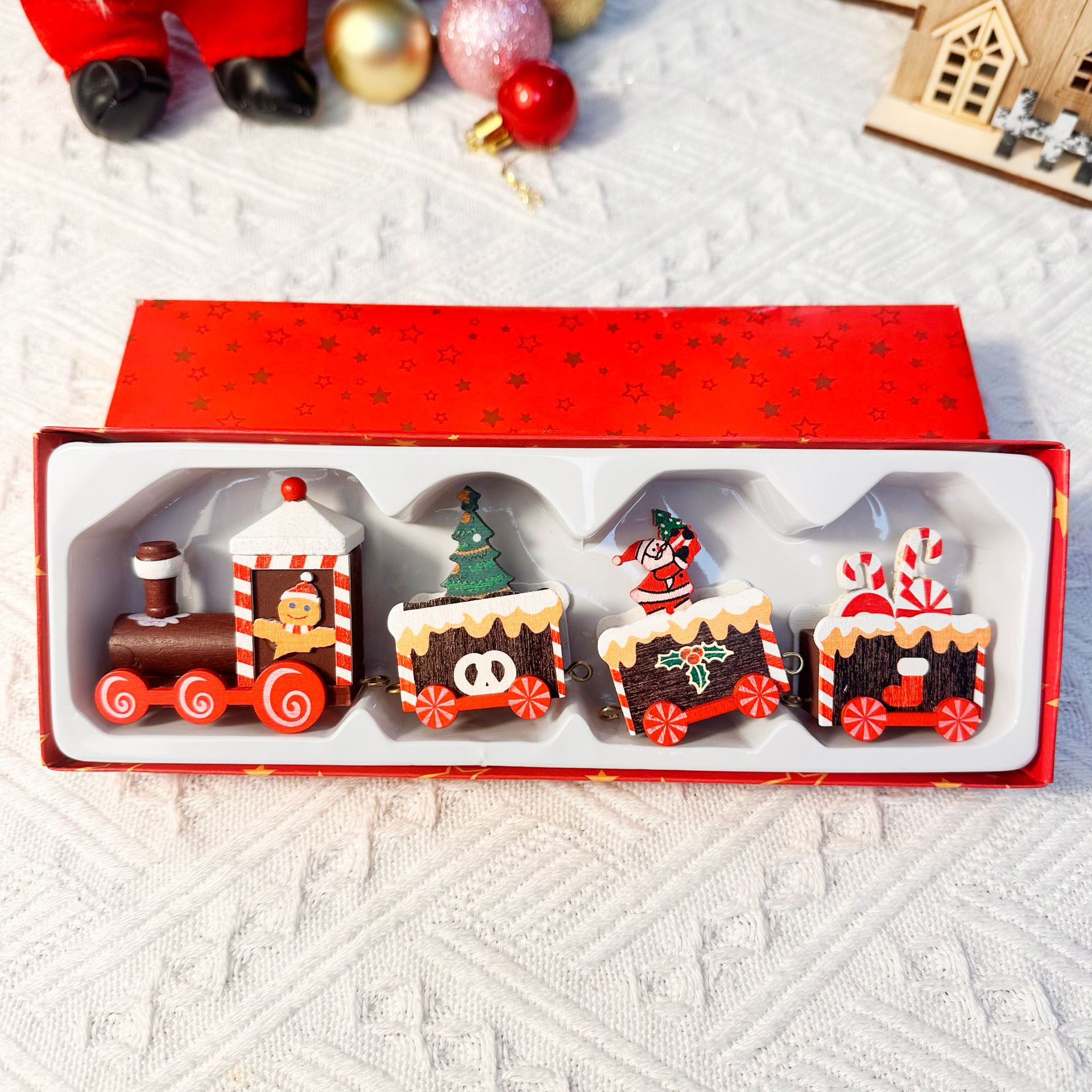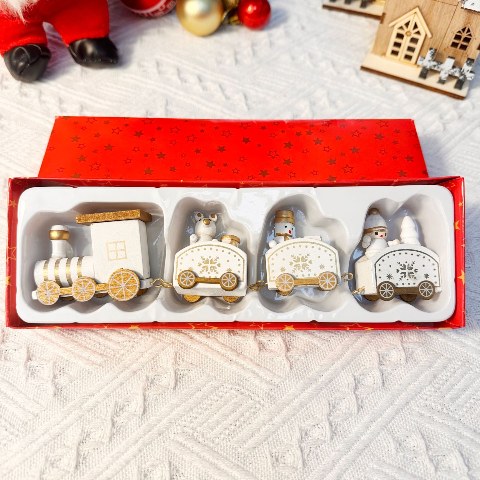 圣诞装饰品木质四节小火车DIY组装桌面橱窗摆件圣诞节儿童小礼物