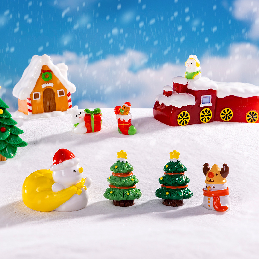 圣诞节雪人麋鹿礼物迷你微景观雪景装饰小摆件树脂工艺品diy配件
