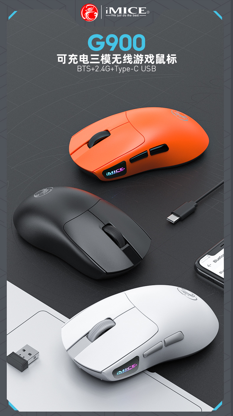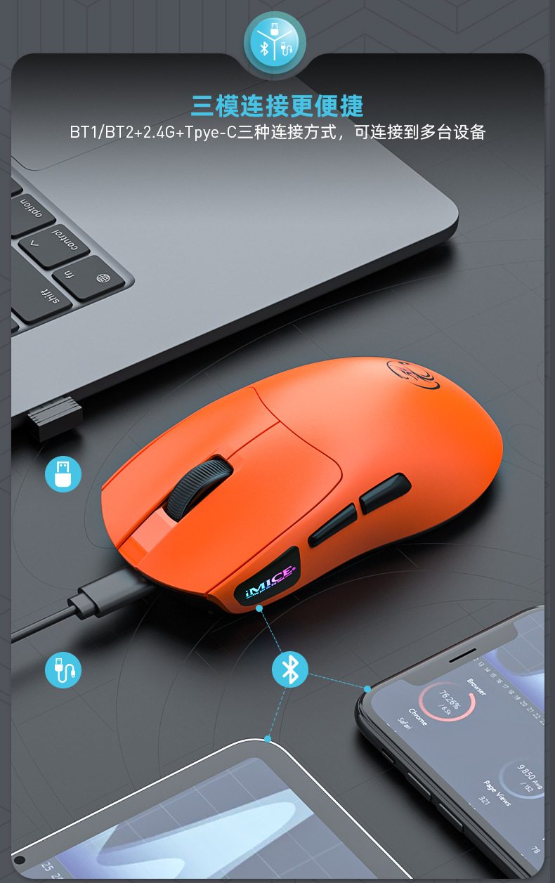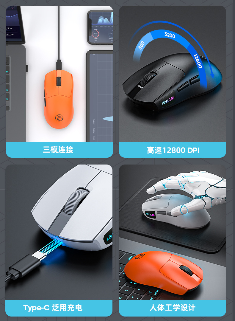 电竞游戏鼠标无线蓝牙三模轻量化1000HZ回报无线充电鼠标