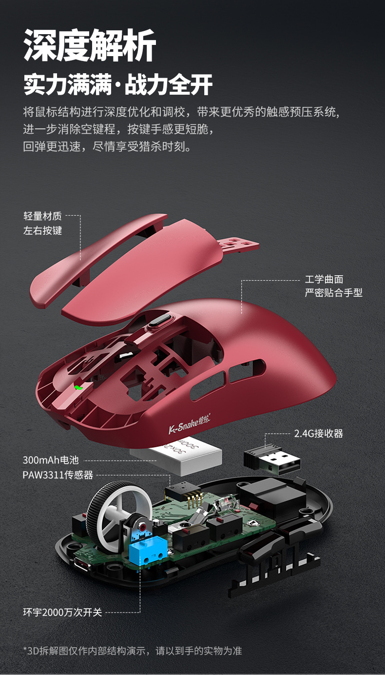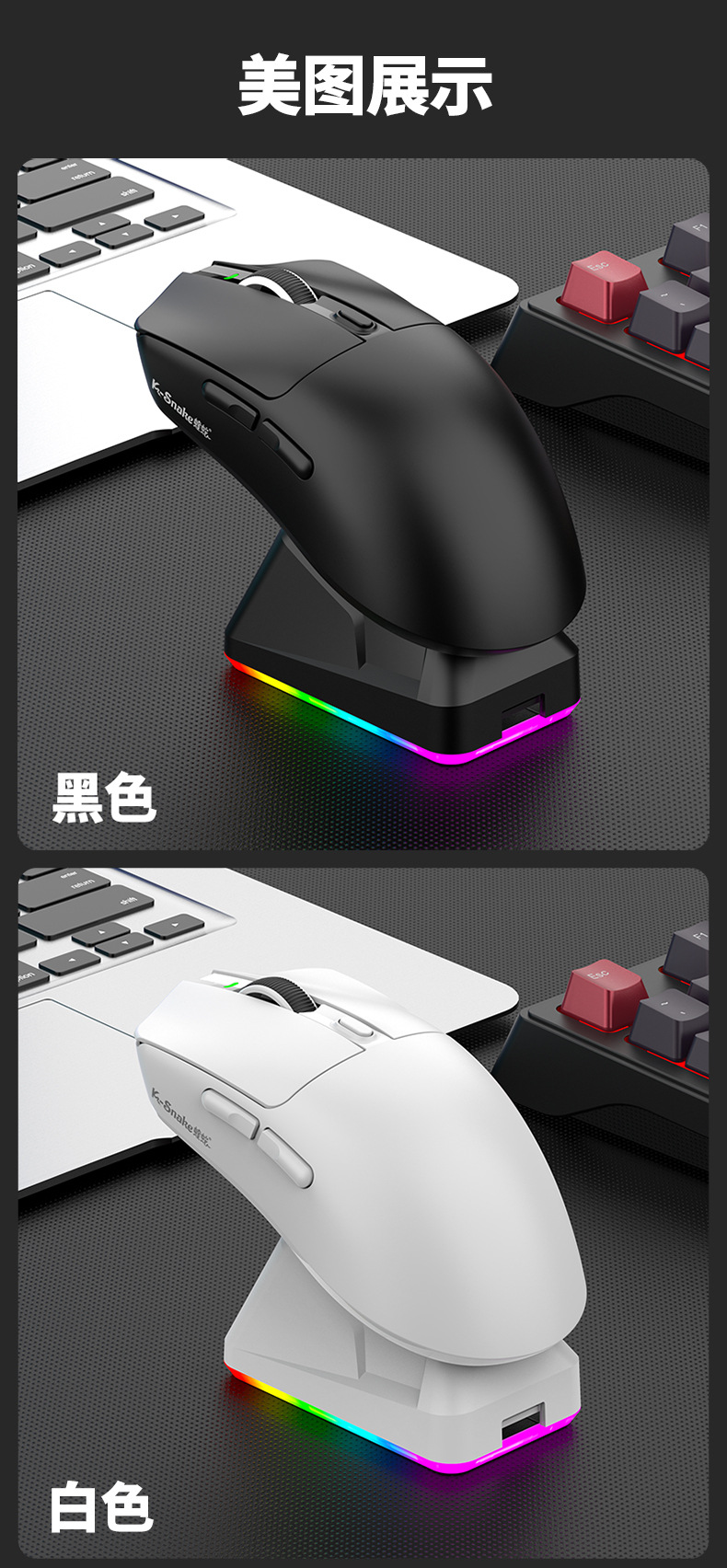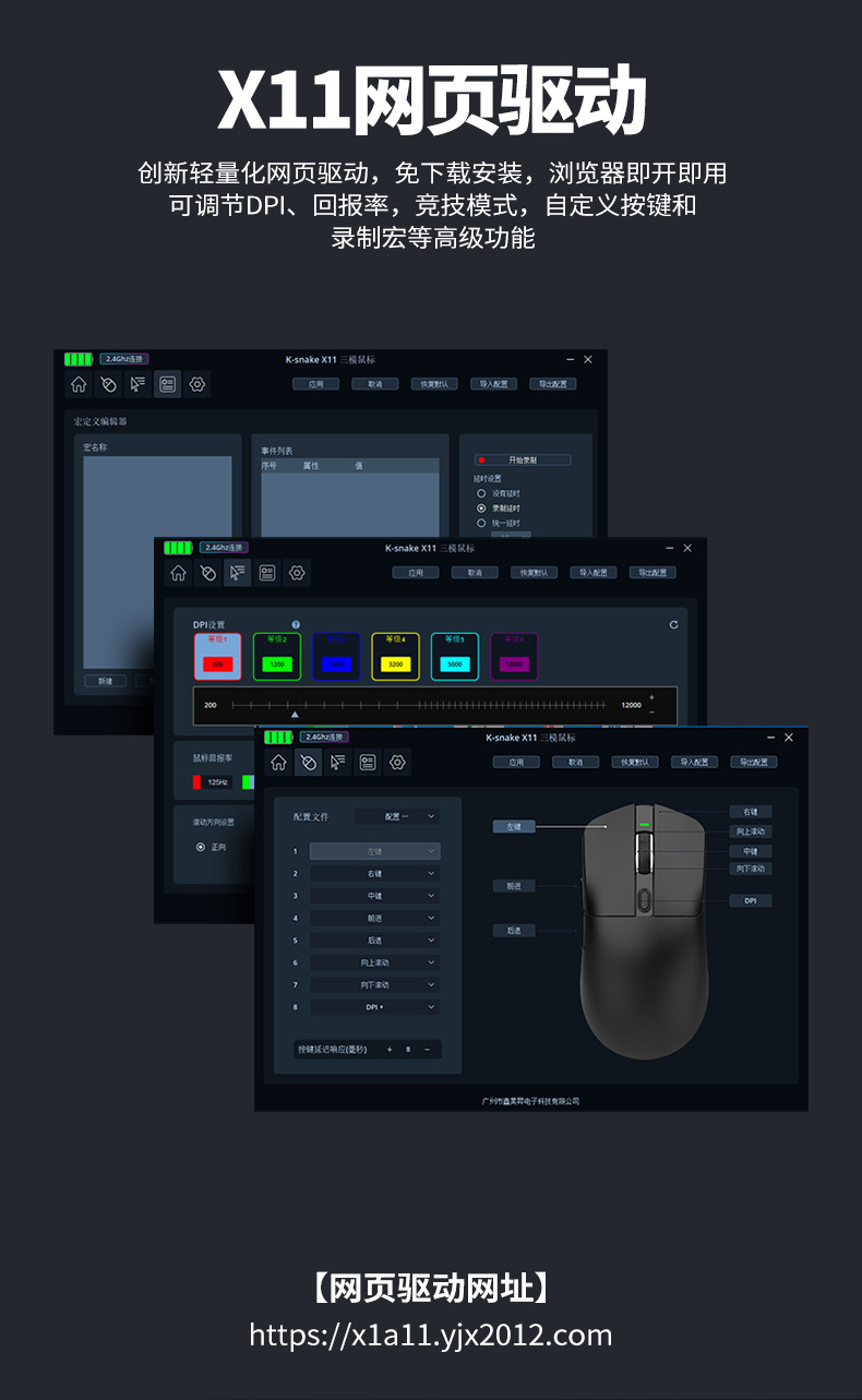 蝰蛇X11三模鼠标轻量化无线蓝牙2.4G鼠标带充电底座游戏电竞
