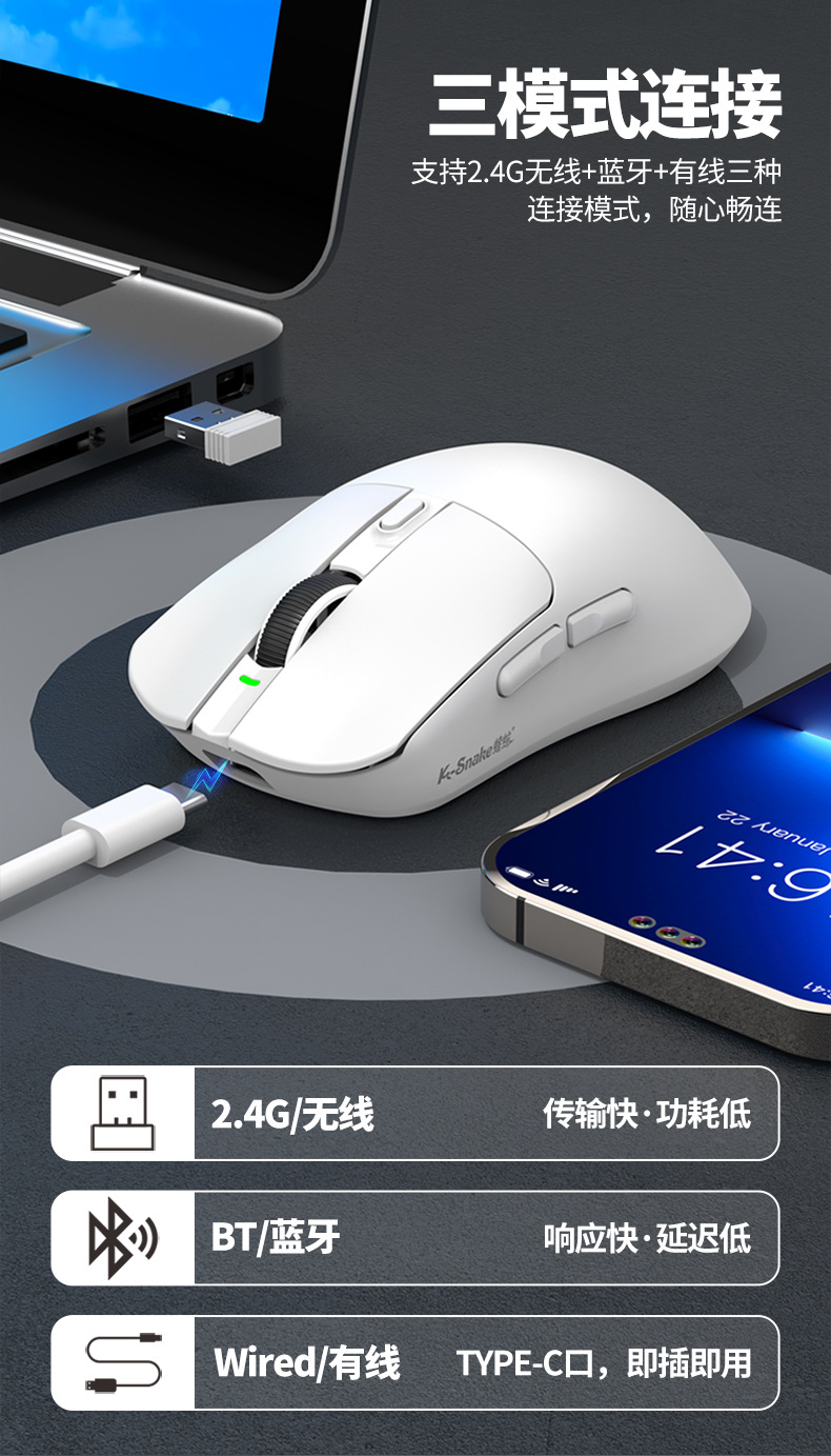 蝰蛇X11PRO白色鼠标(蓝牙5.0+无线2.4G+有线三模