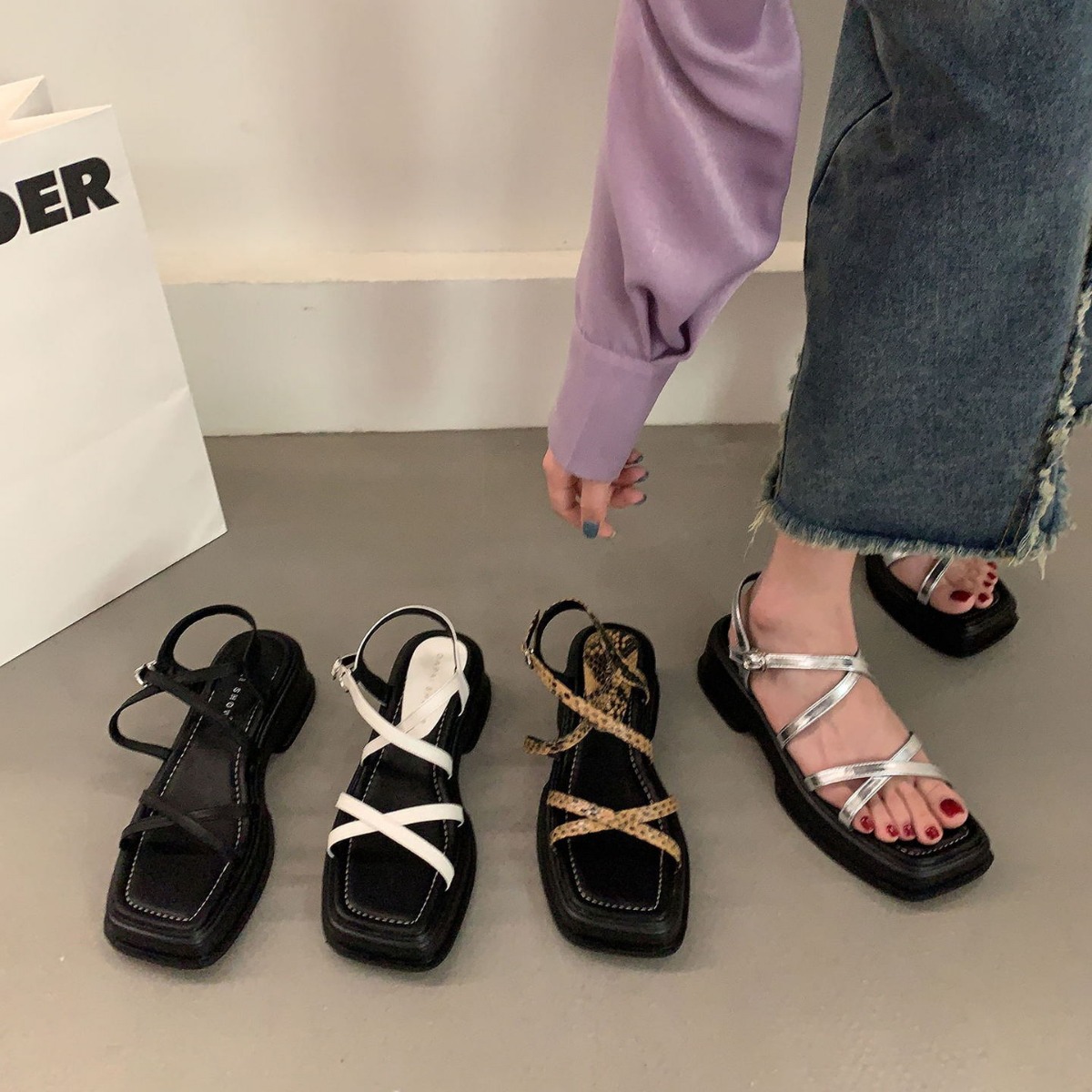 厚底女士凉鞋新款法式晚风小个子银色罗马沙滩凉拖度假拖鞋
