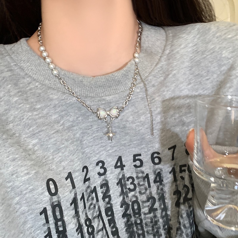 甜酷风蝴蝶结珍珠项链女轻奢小众高级感配饰个性设计感爱心锁骨链
