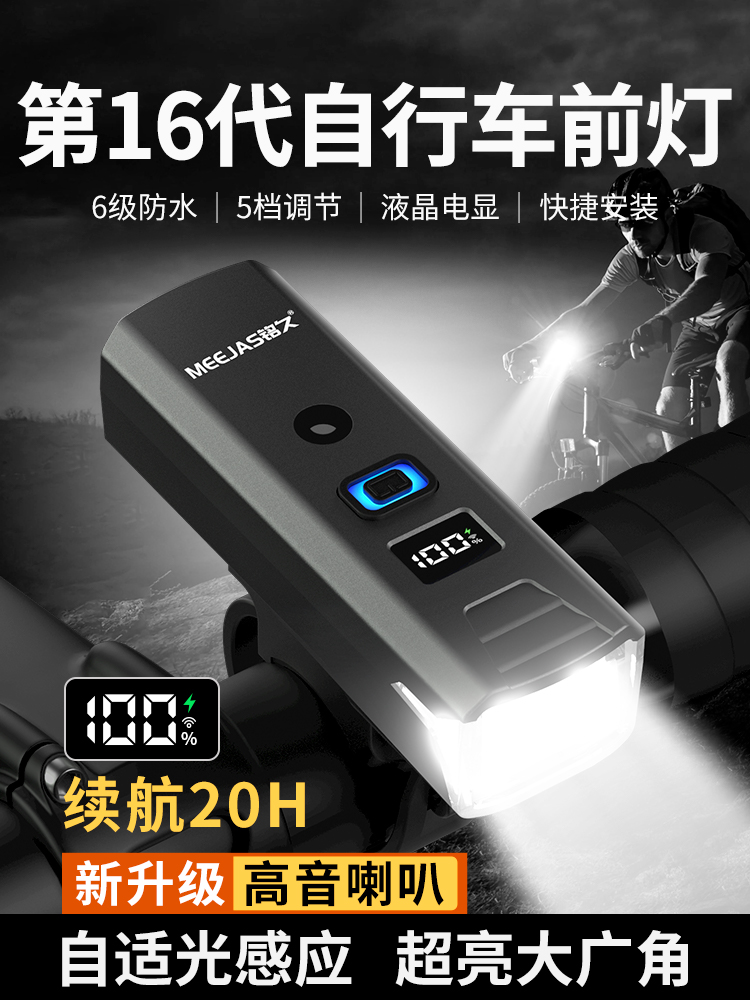 自行车夜骑前灯强光防水手电筒儿童山地公路夜间照明骑行装备