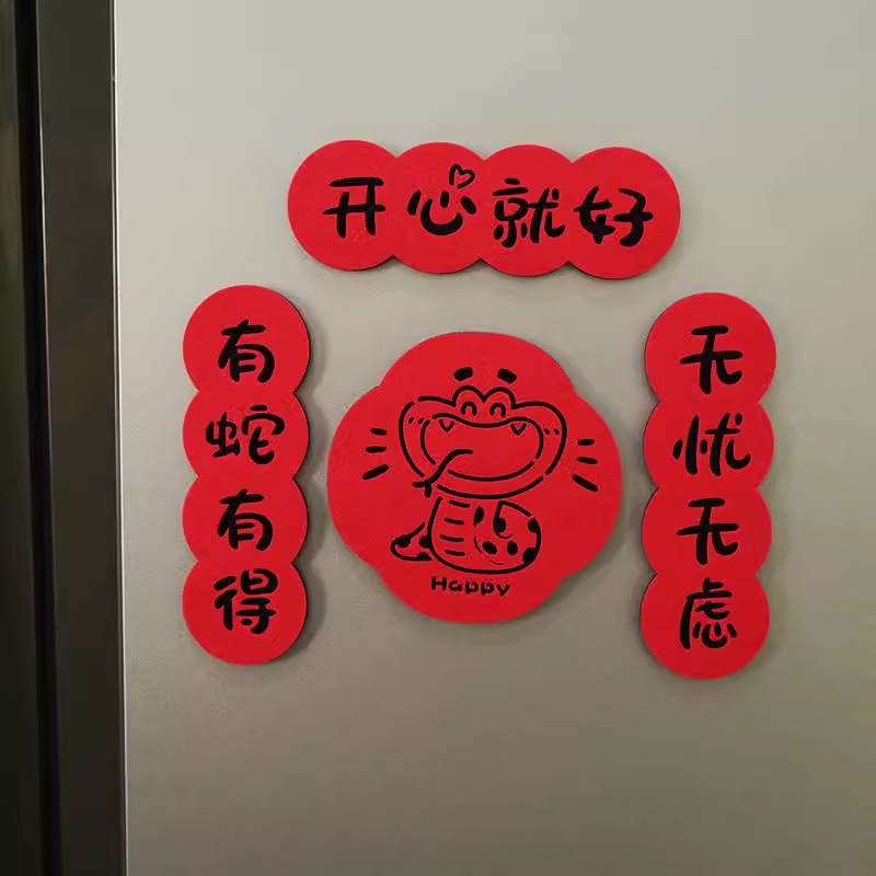 2025蛇年可爱不织布迷你对联冰箱贴磁吸小春联福字