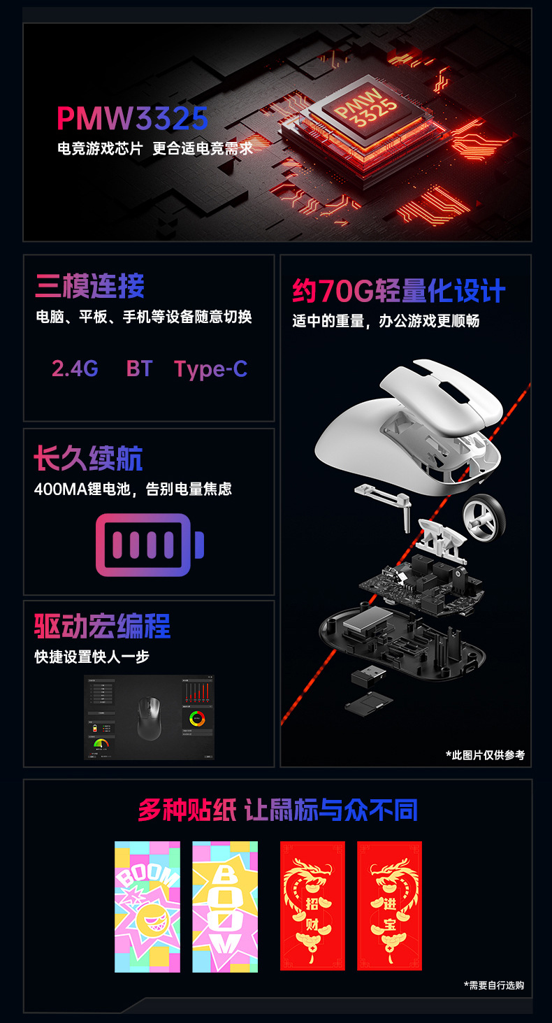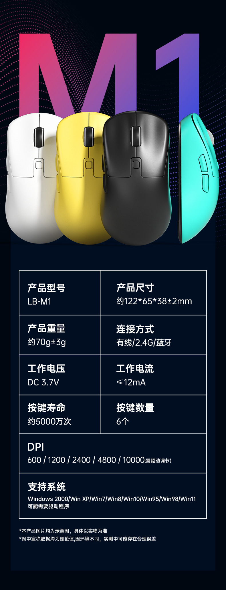 M1鼠标无线三模蓝牙有线轻量化游戏鼠标电竞游戏高颜值
