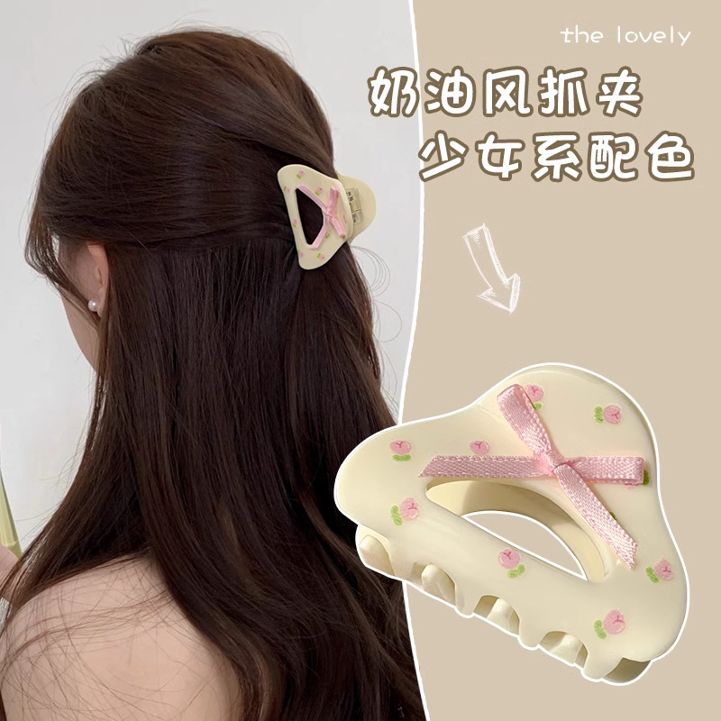 奶油风少女小抓夹甜美鲨鱼夹女新款蝴蝶结发抓半扎发夹高颜值头饰