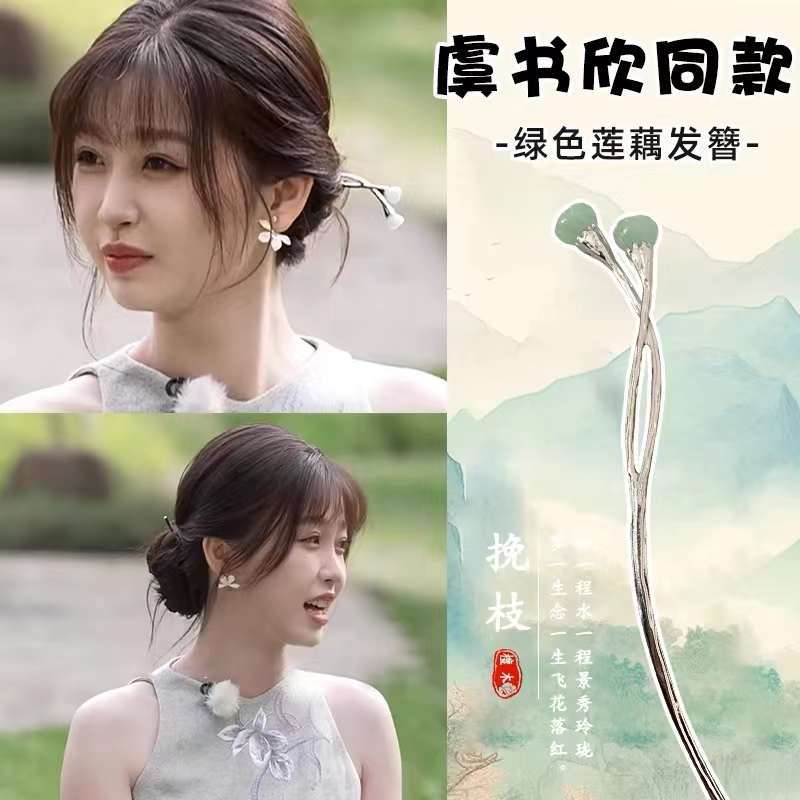 绿色发簪女新款莲藕发钗新中式古风莲花簪子