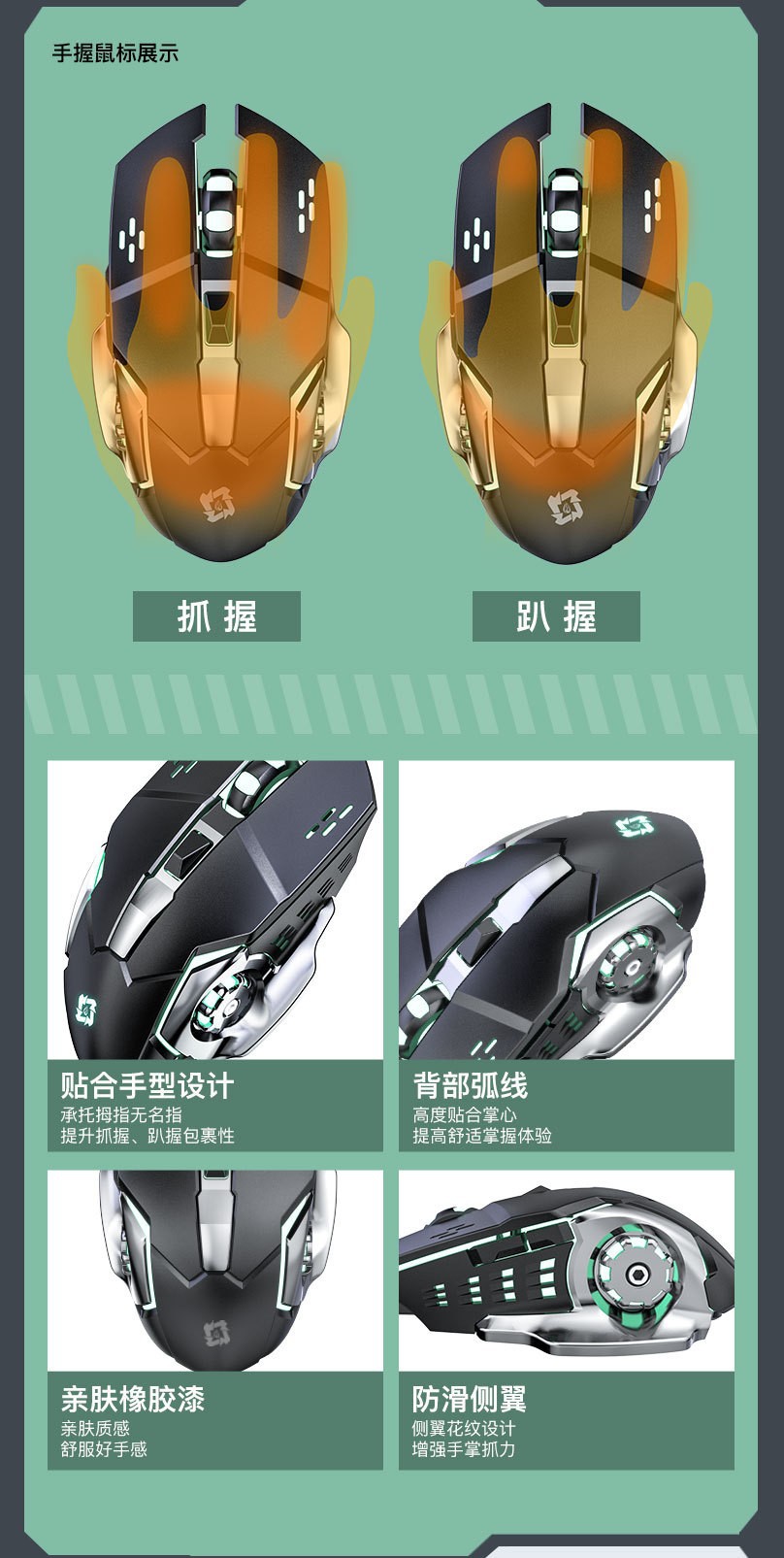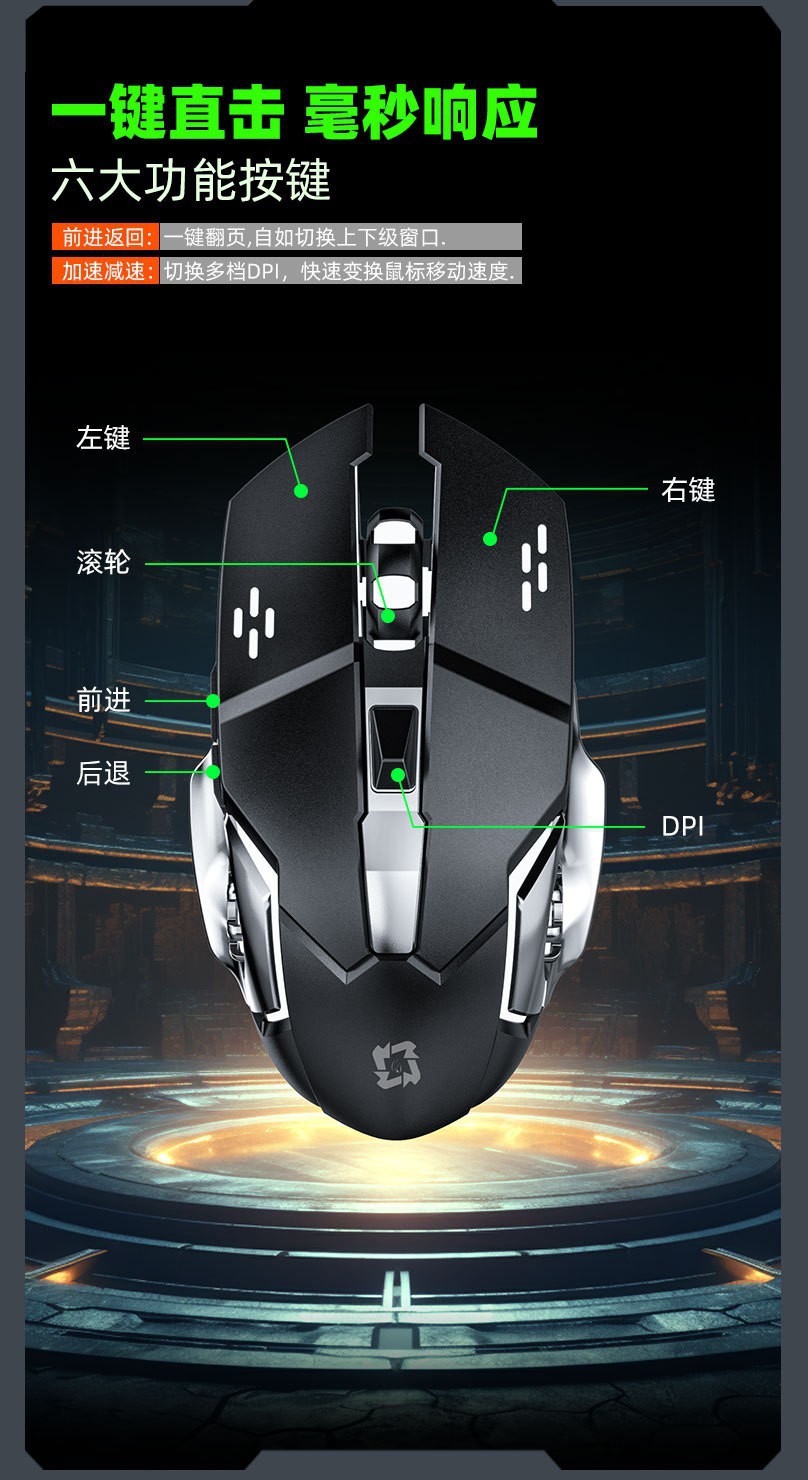 无线蓝牙鼠标静音双模电竞游戏充电发光机械电脑办公鼠标