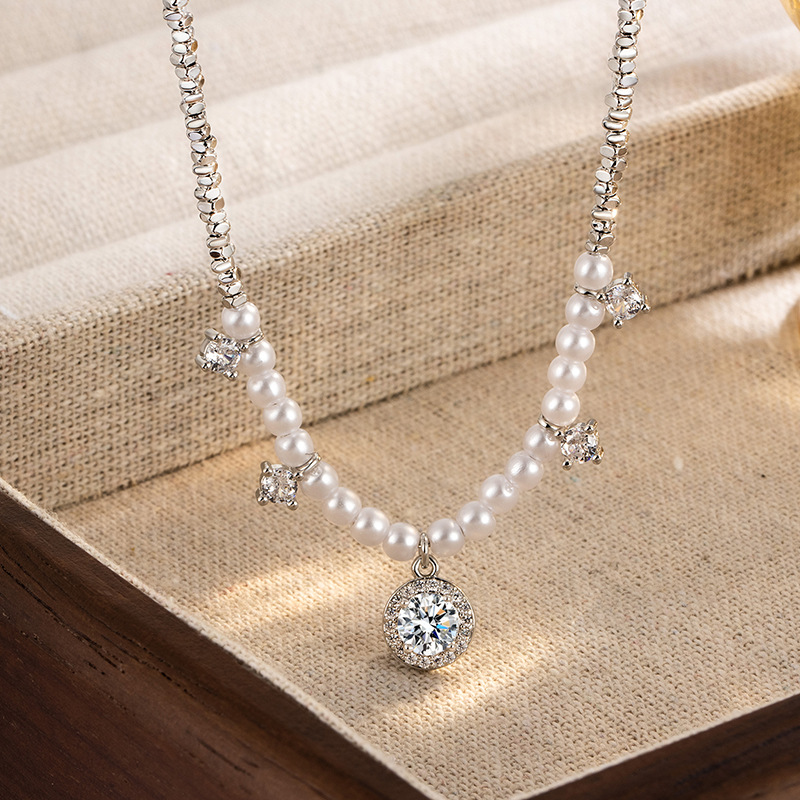闪钻圆形碎银子珍珠项链女锆石几何吊坠小众设计春夏超闪爆款个性