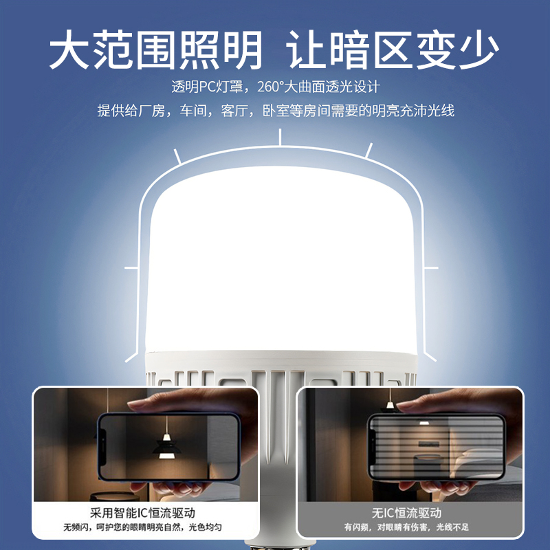 led灯泡家用E27螺口螺旋节能灯白光超亮护眼无频闪大功率照明球泡