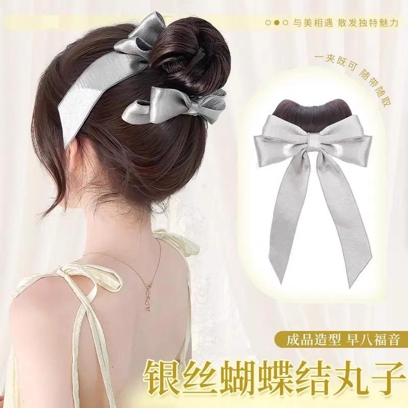 丸子头假发女仿真发蝴蝶结高扎抓夹花苞头发饰百搭盘发神器假发包
