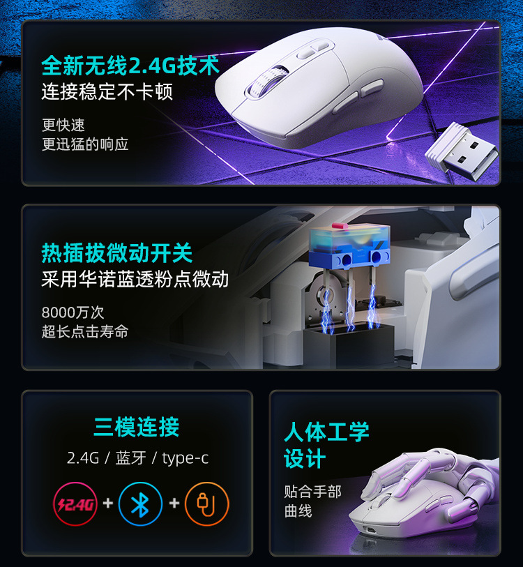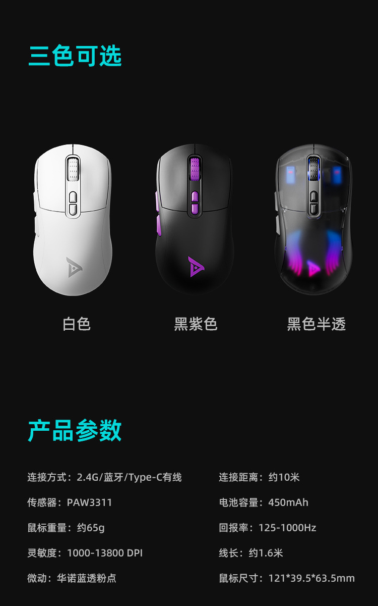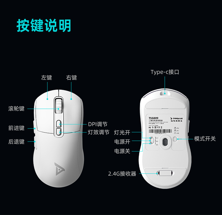 钛度TSG809千机伞无线蓝牙双模鼠标可充电有线轻量化电竞游戏鼠标