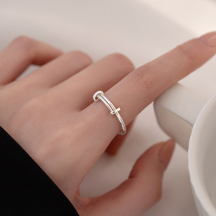 新款个性简约线条缠绕戒指男女情侣对戒女小众食指戒时尚指环