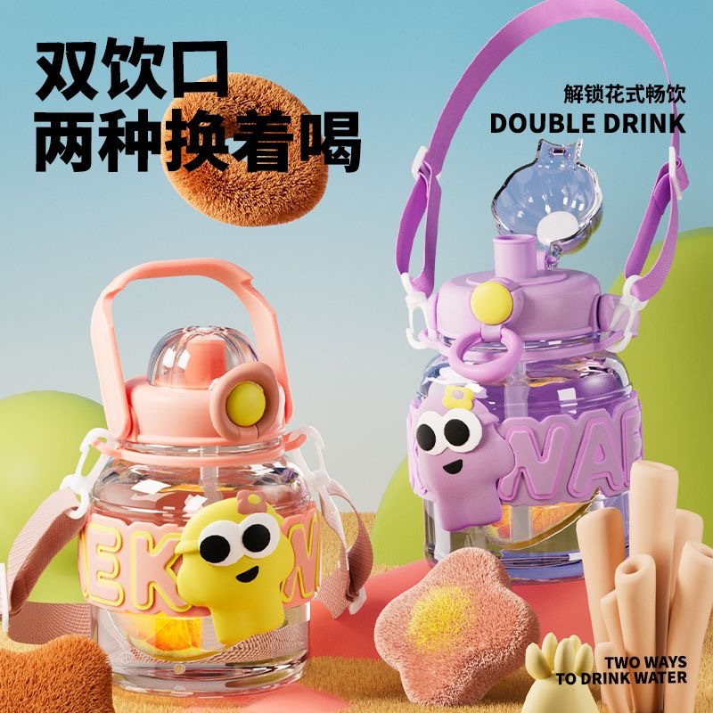 高颜值大肚杯ins运动户外耐高温杯子儿童大容量水杯带吸管塑料杯