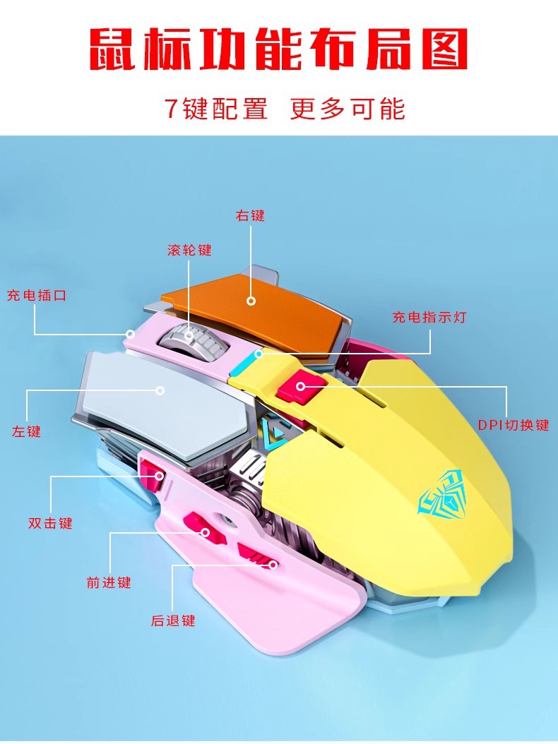 狼蛛SC300无线游戏电竞充电鼠标网吧游戏金属RGB发光吃鸡鼠标