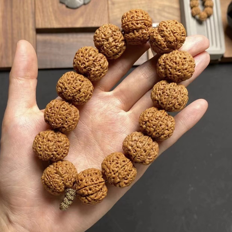 尼泊尔大金刚菩提子手串爆满肉梅花双龙纹原籽5五6六瓣男佛珠