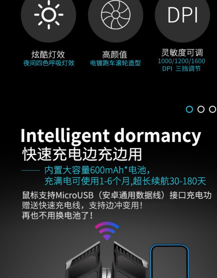 - 科技黑【静音-充电旗舰版-电镀侧翼】-官方标配