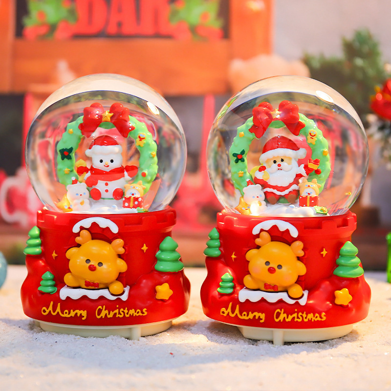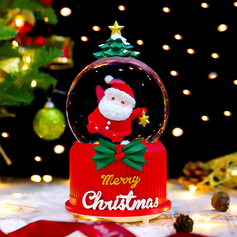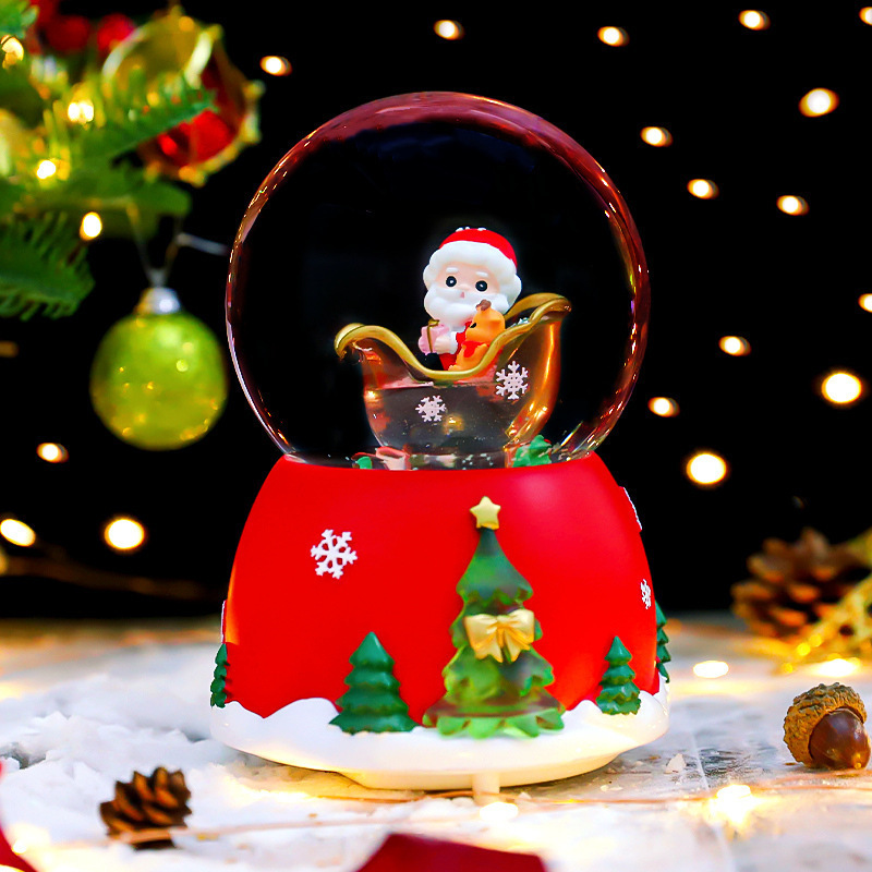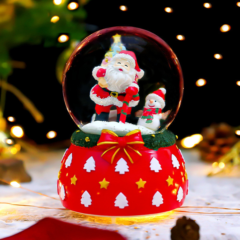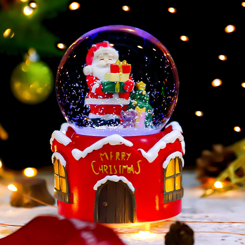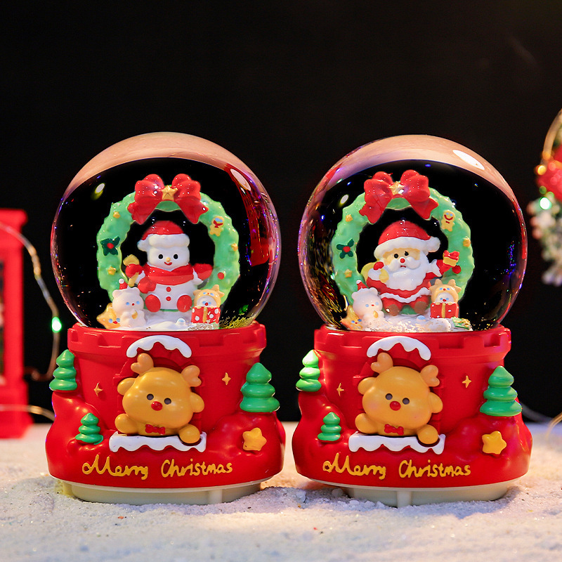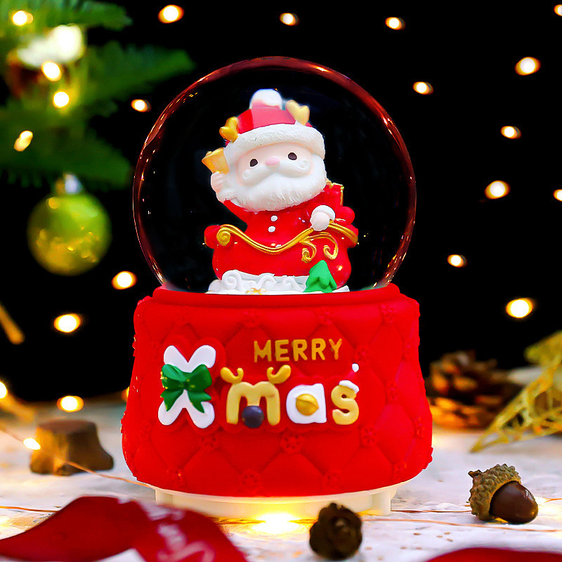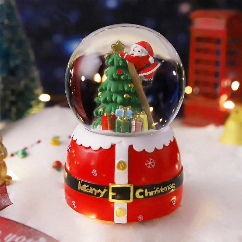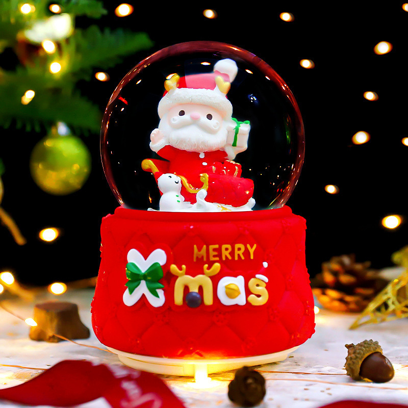 新款圣诞物语水晶球摆件发光发亮八音盒桌面装饰品圣诞节礼品