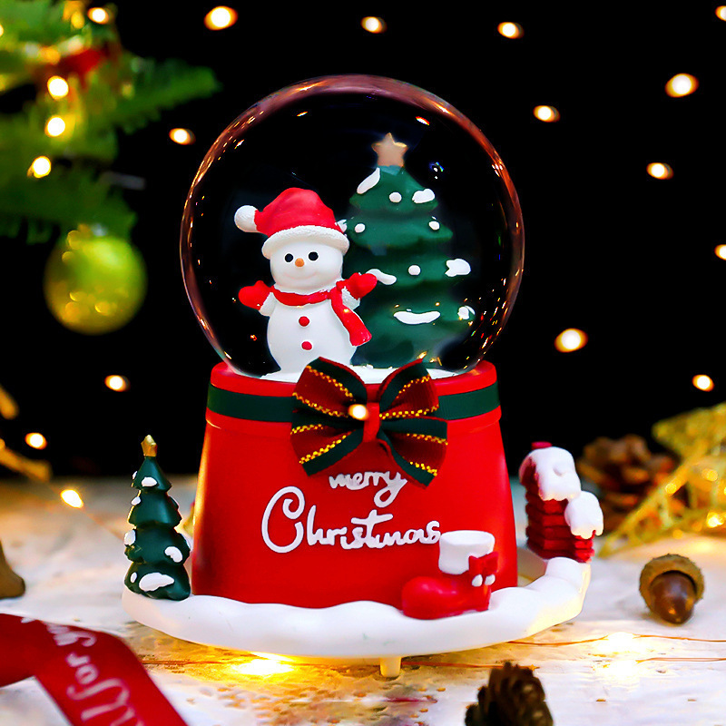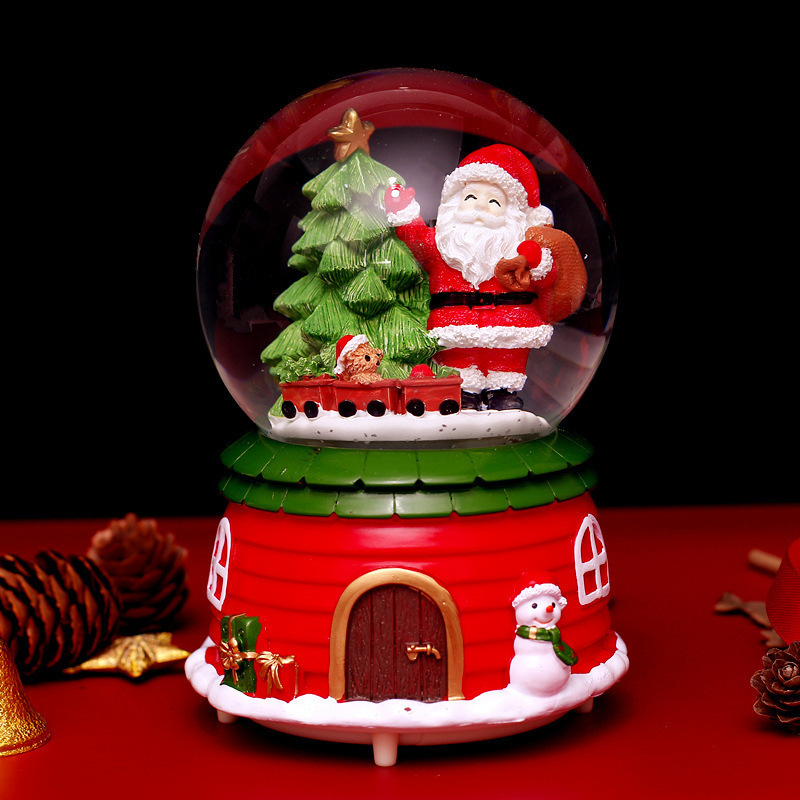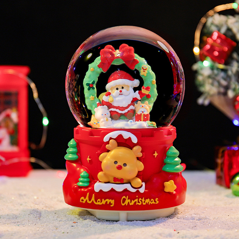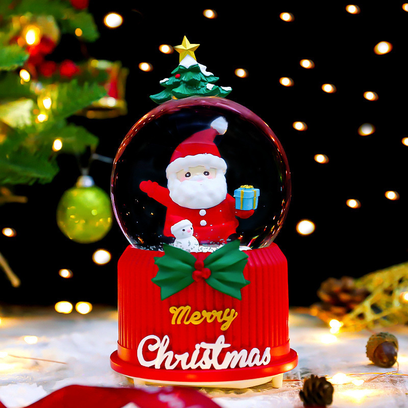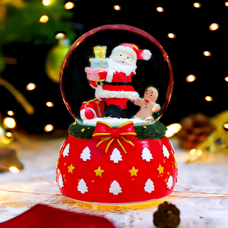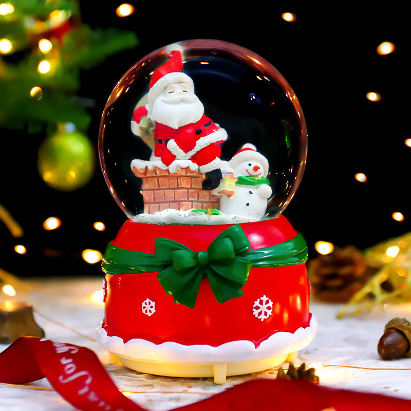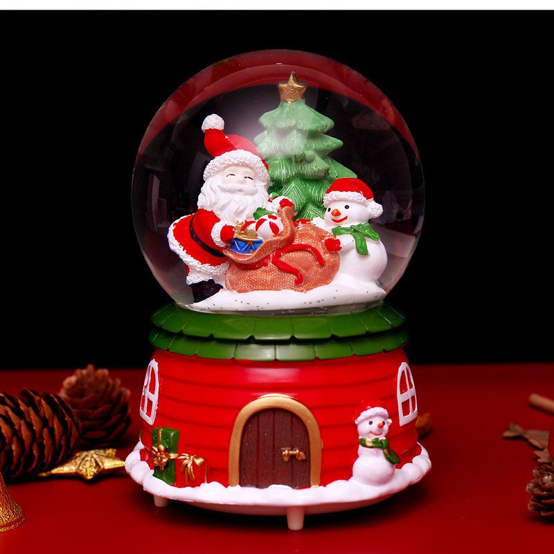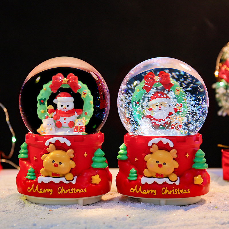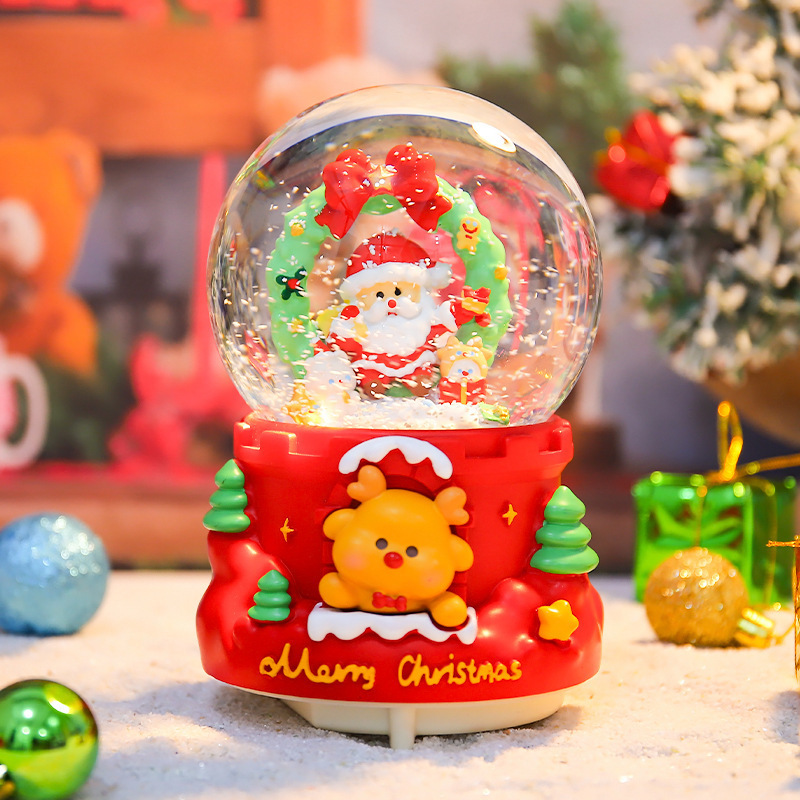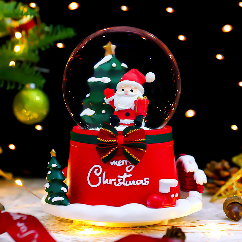 新款圣诞物语水晶球摆件发光发亮八音盒桌面装饰品圣诞节礼品