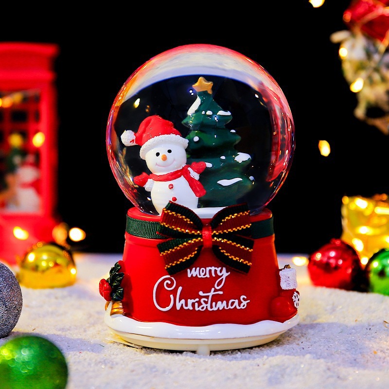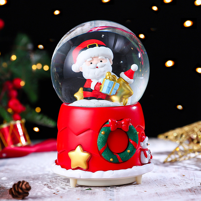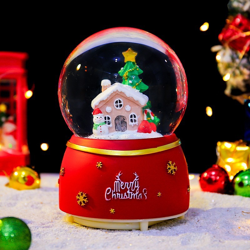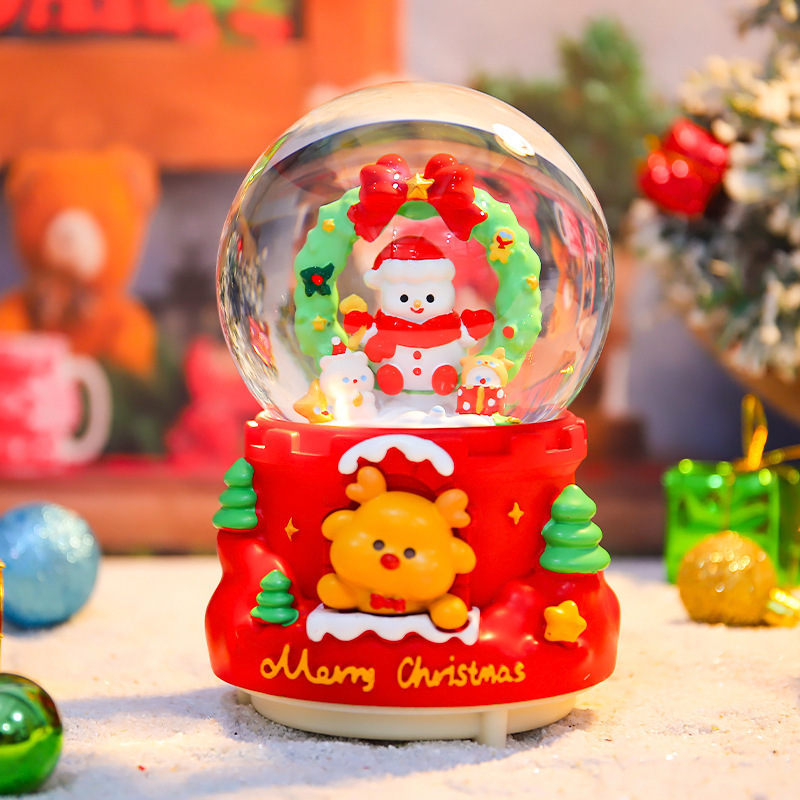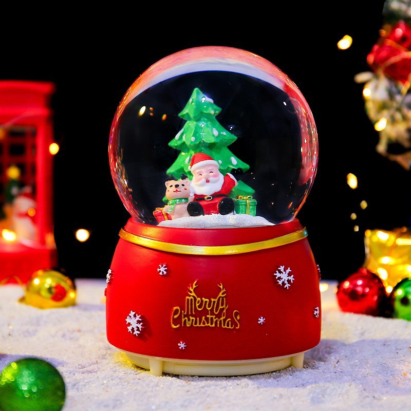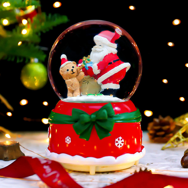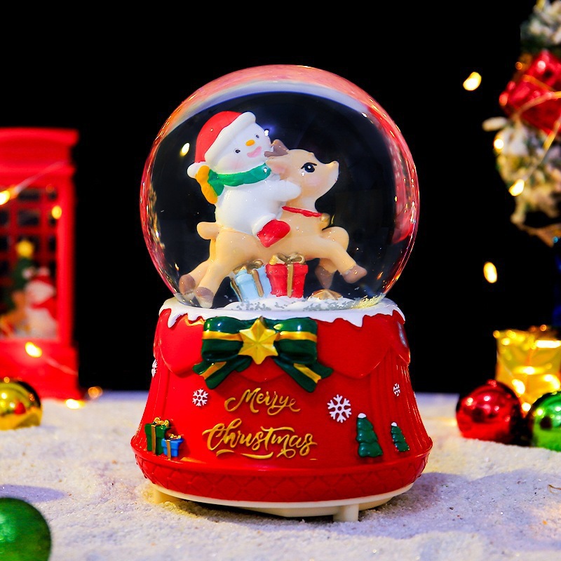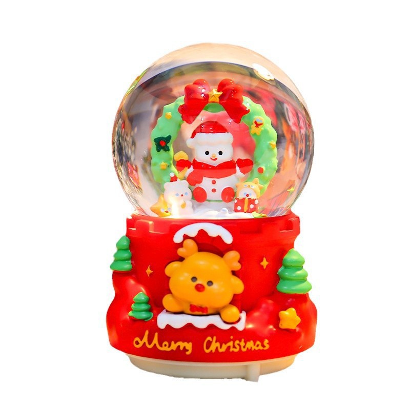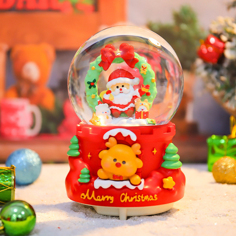 新款圣诞物语水晶球摆件发光发亮八音盒桌面装饰品圣诞节礼品