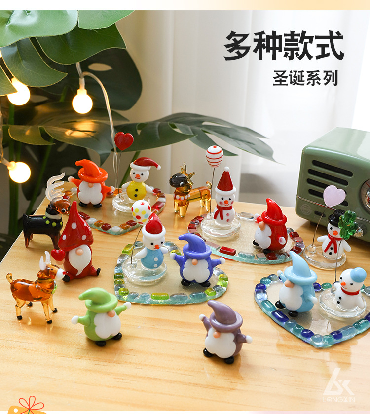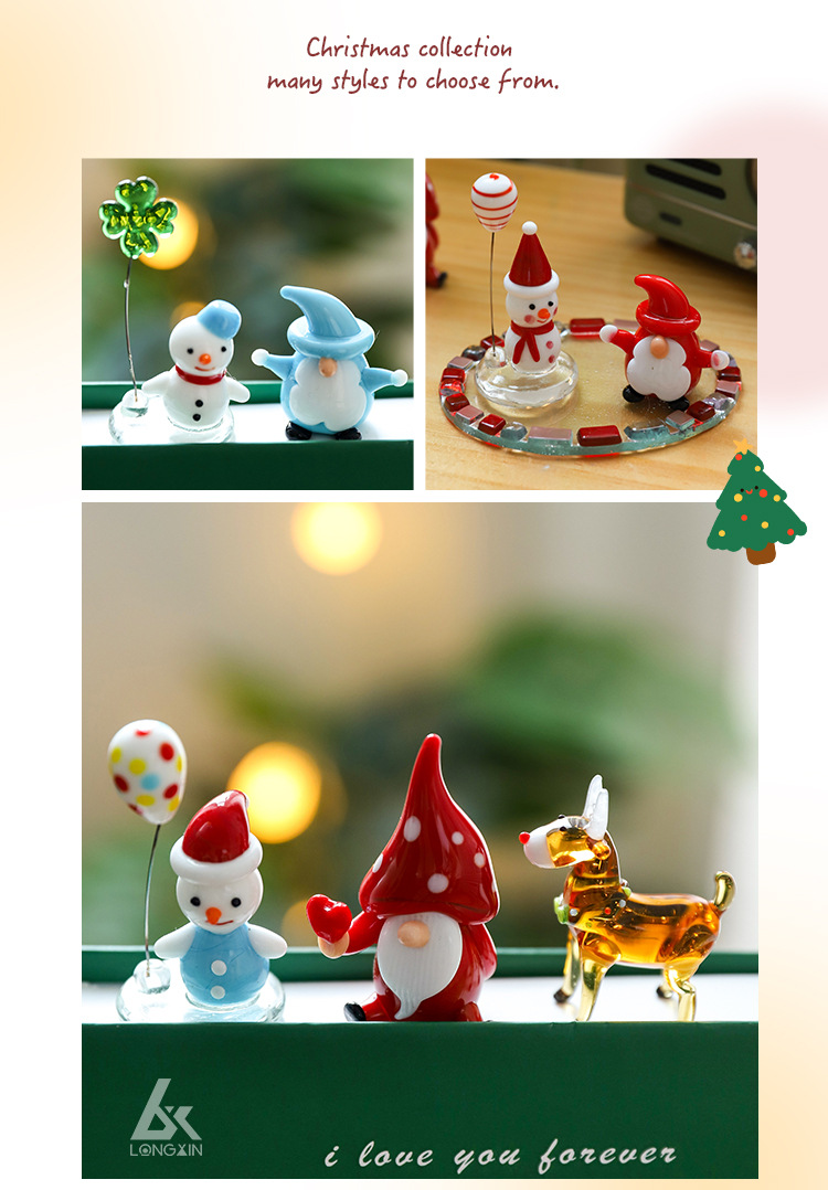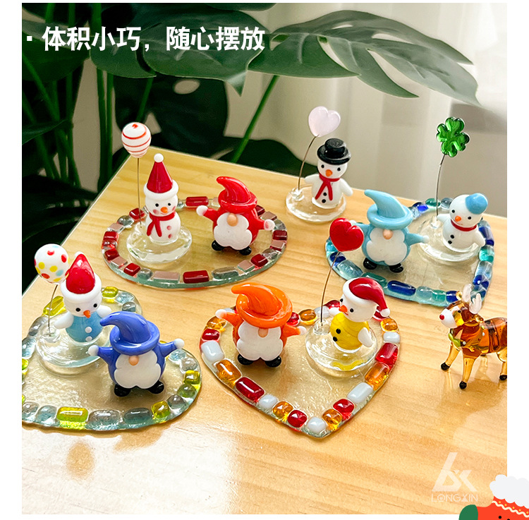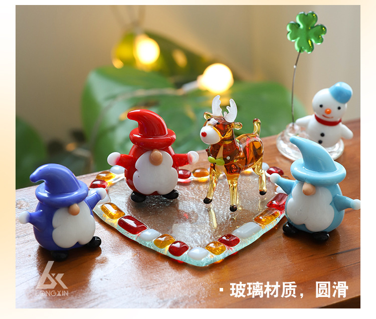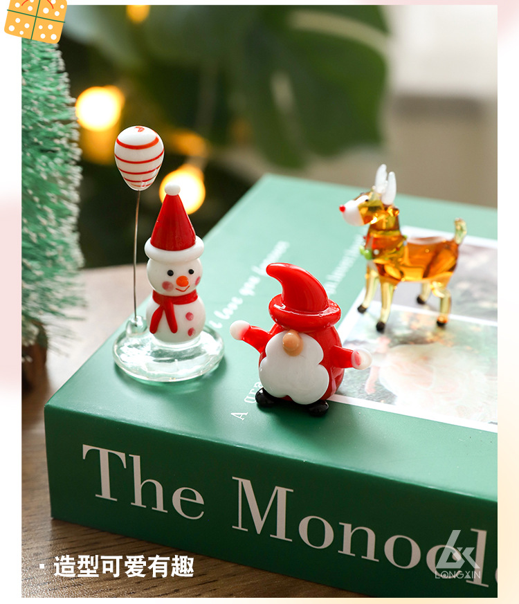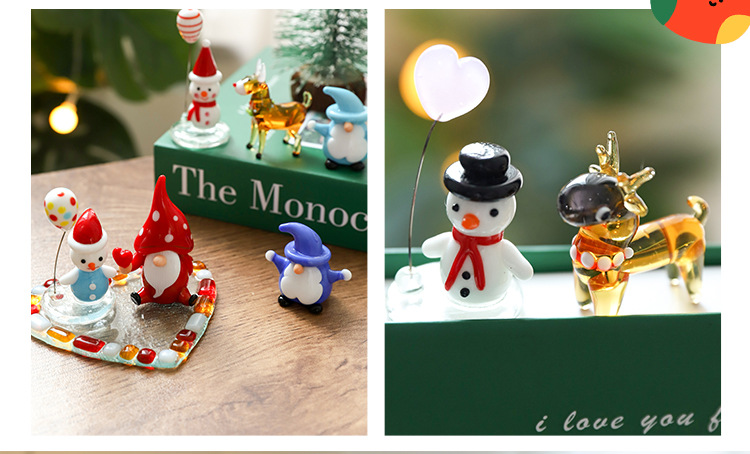 创意圣诞玻璃摆件彩色圣诞企鹅雪人气球麋鹿桌面摆饰车载摆件
