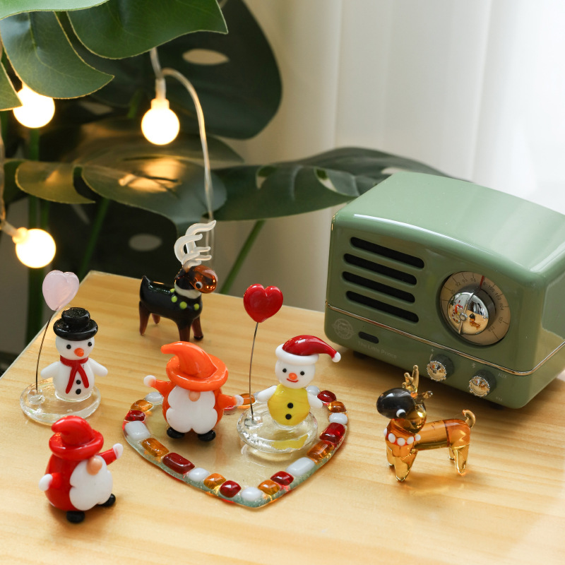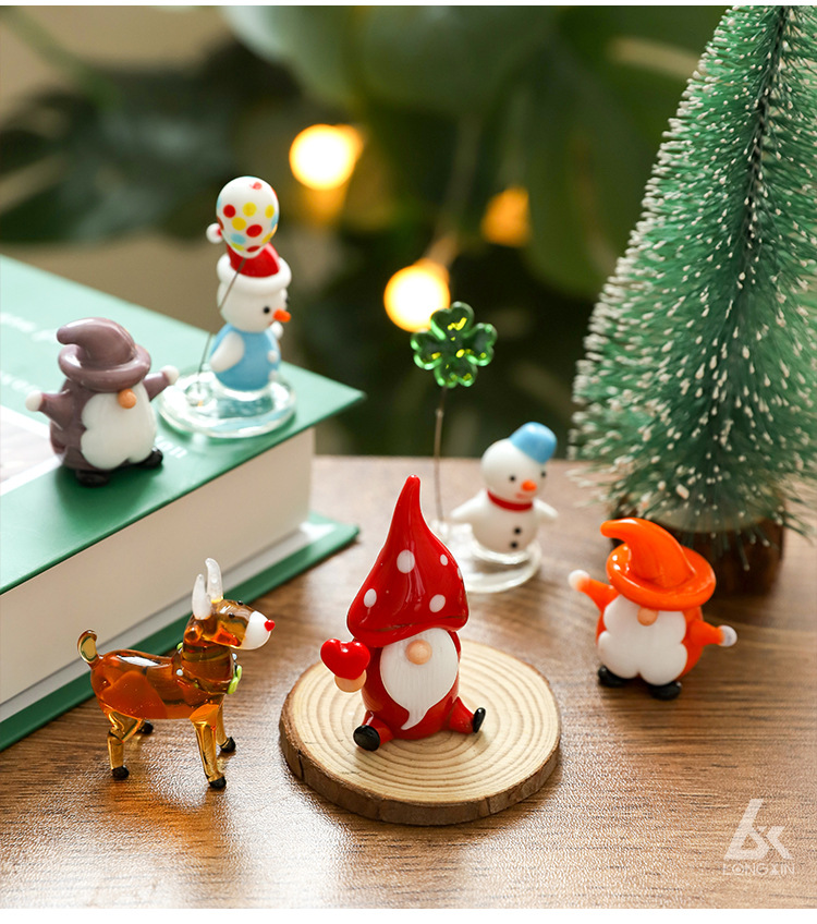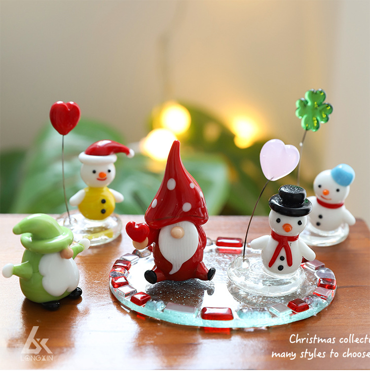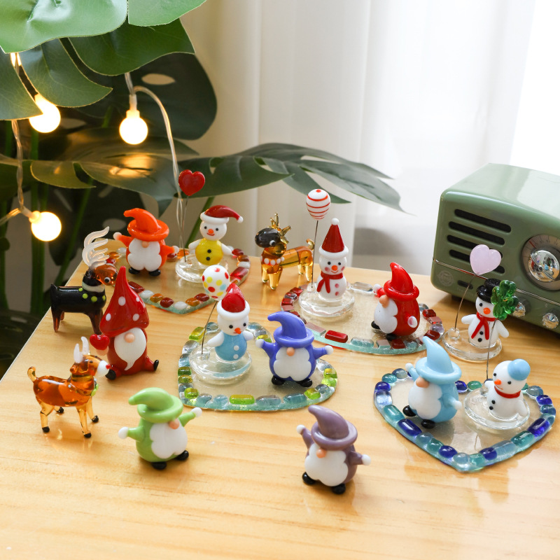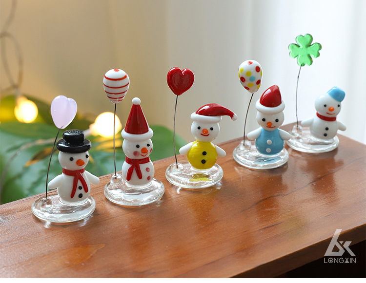 创意圣诞玻璃摆件彩色圣诞企鹅雪人气球麋鹿桌面摆饰车载摆件