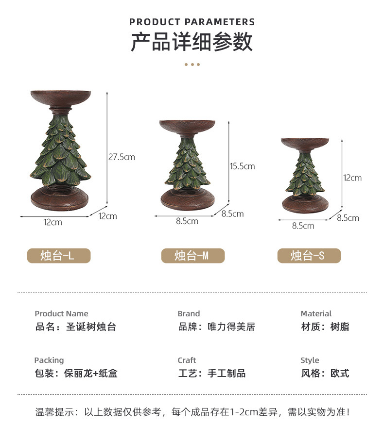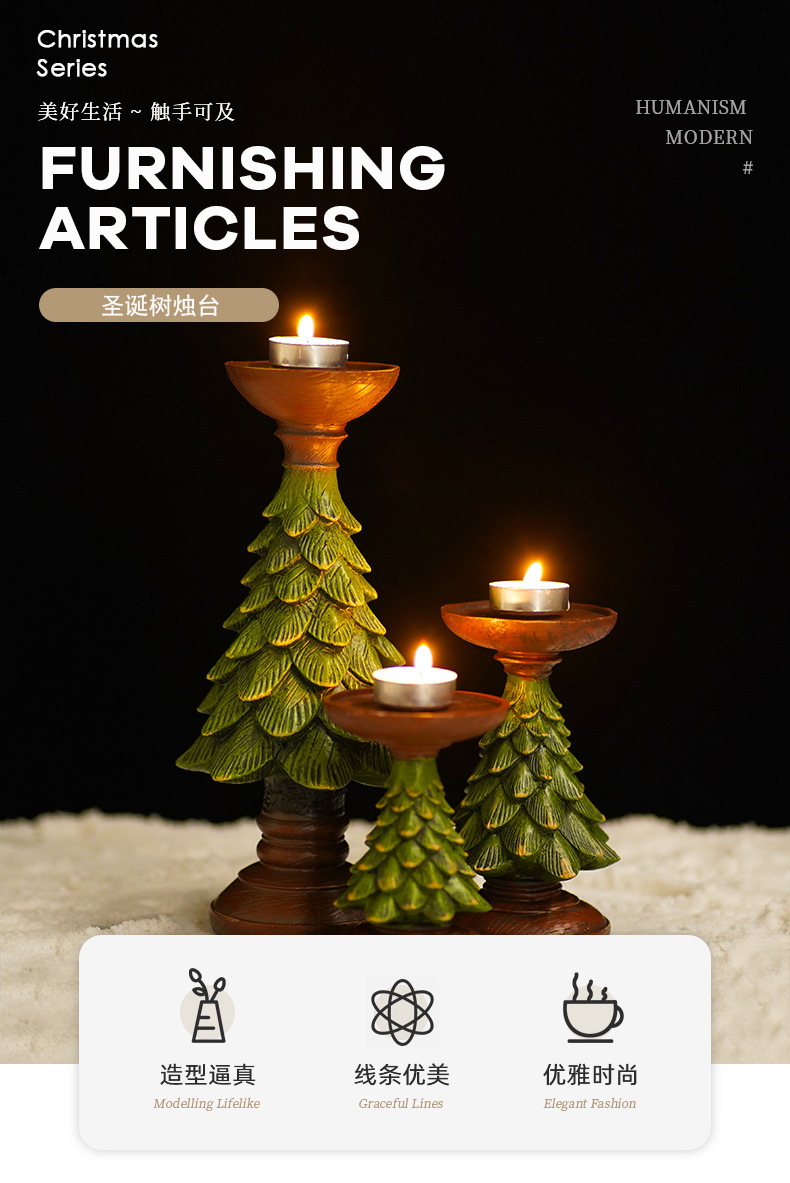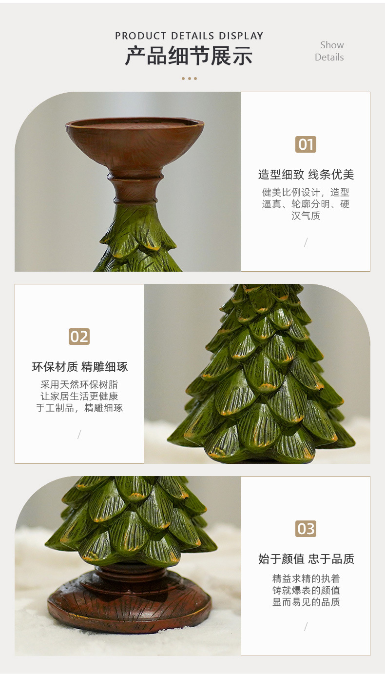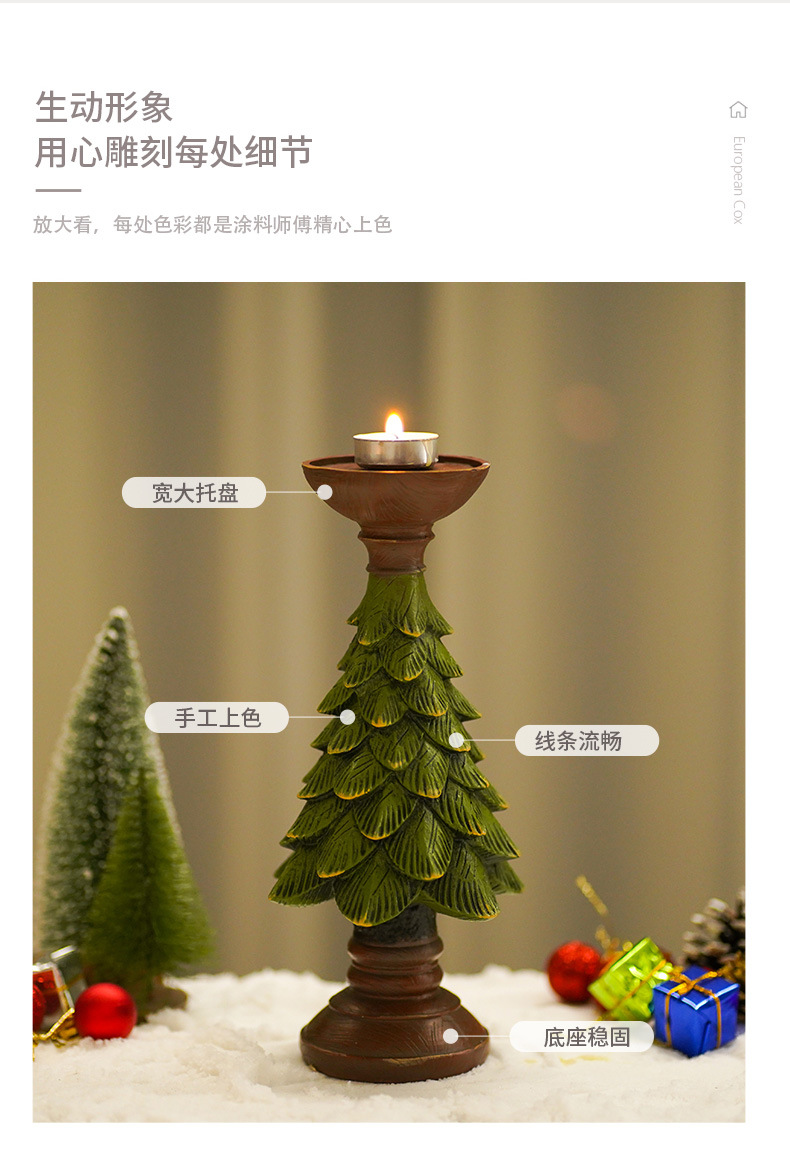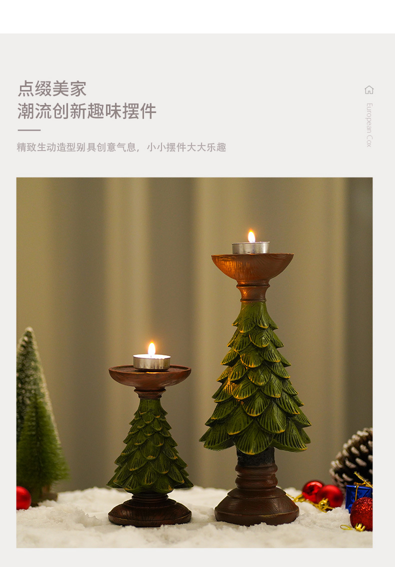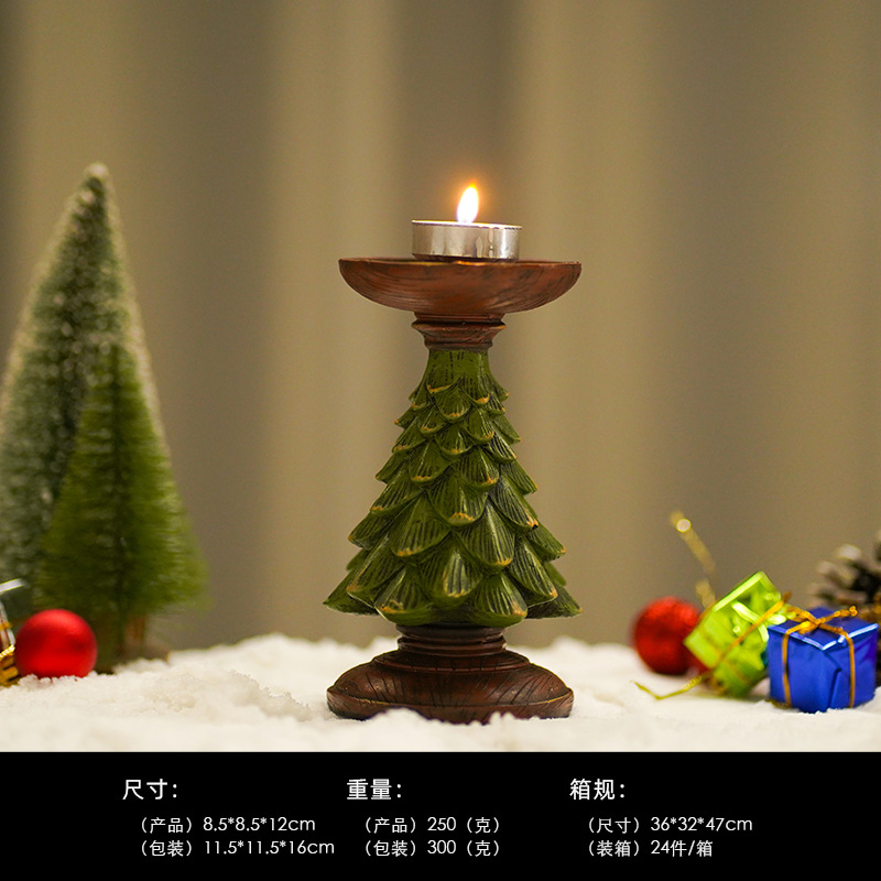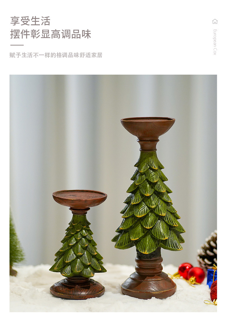仿木圣诞树烛台底座欧式家居圣诞节桌面圣诞装饰蜡烛树脂摆件