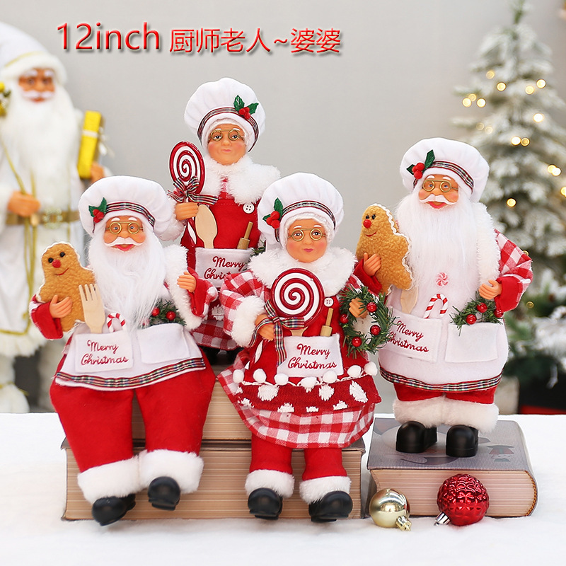 卡通创意新款站立坐姿厨师老人婆婆圣诞节酒店餐厅桌面装饰品摆件