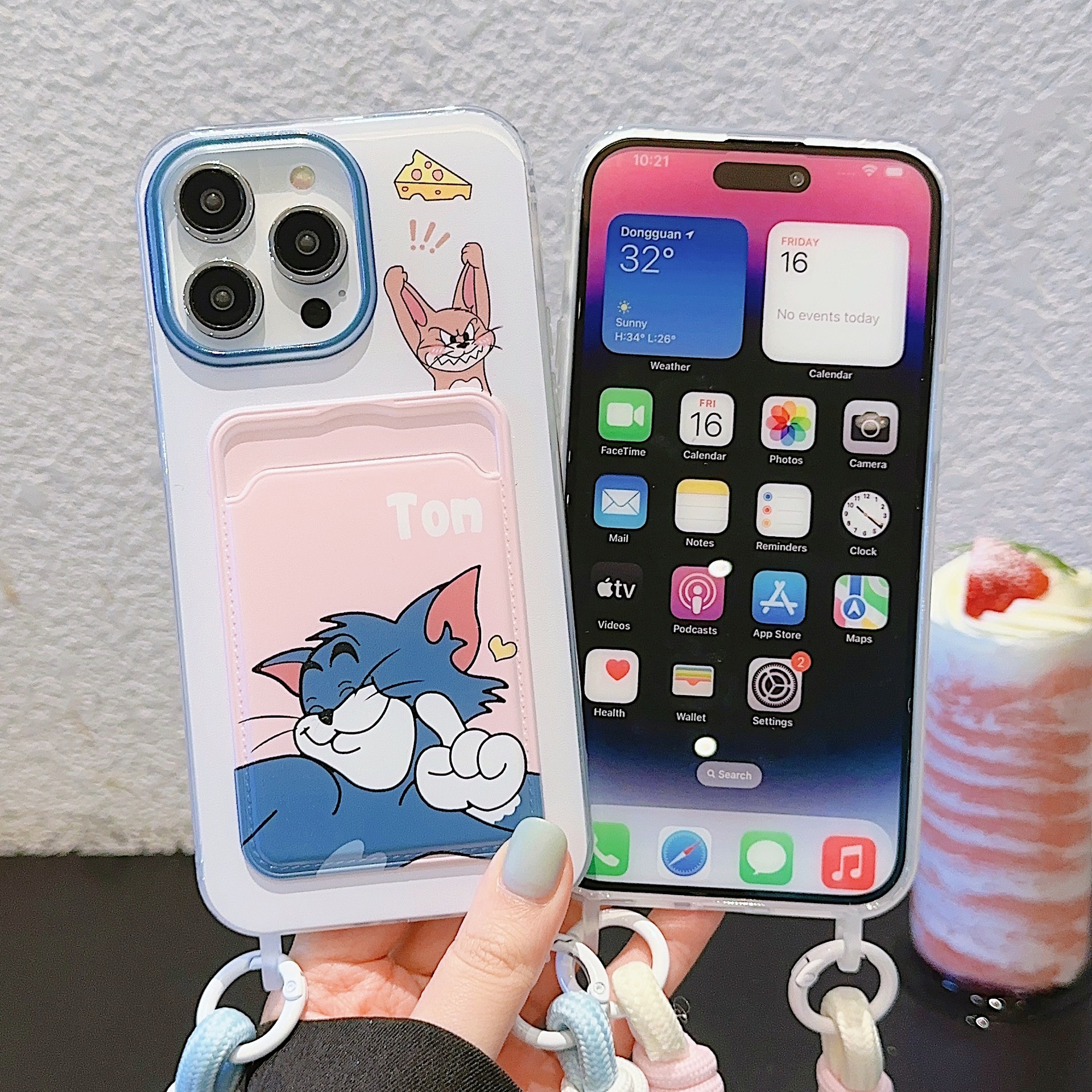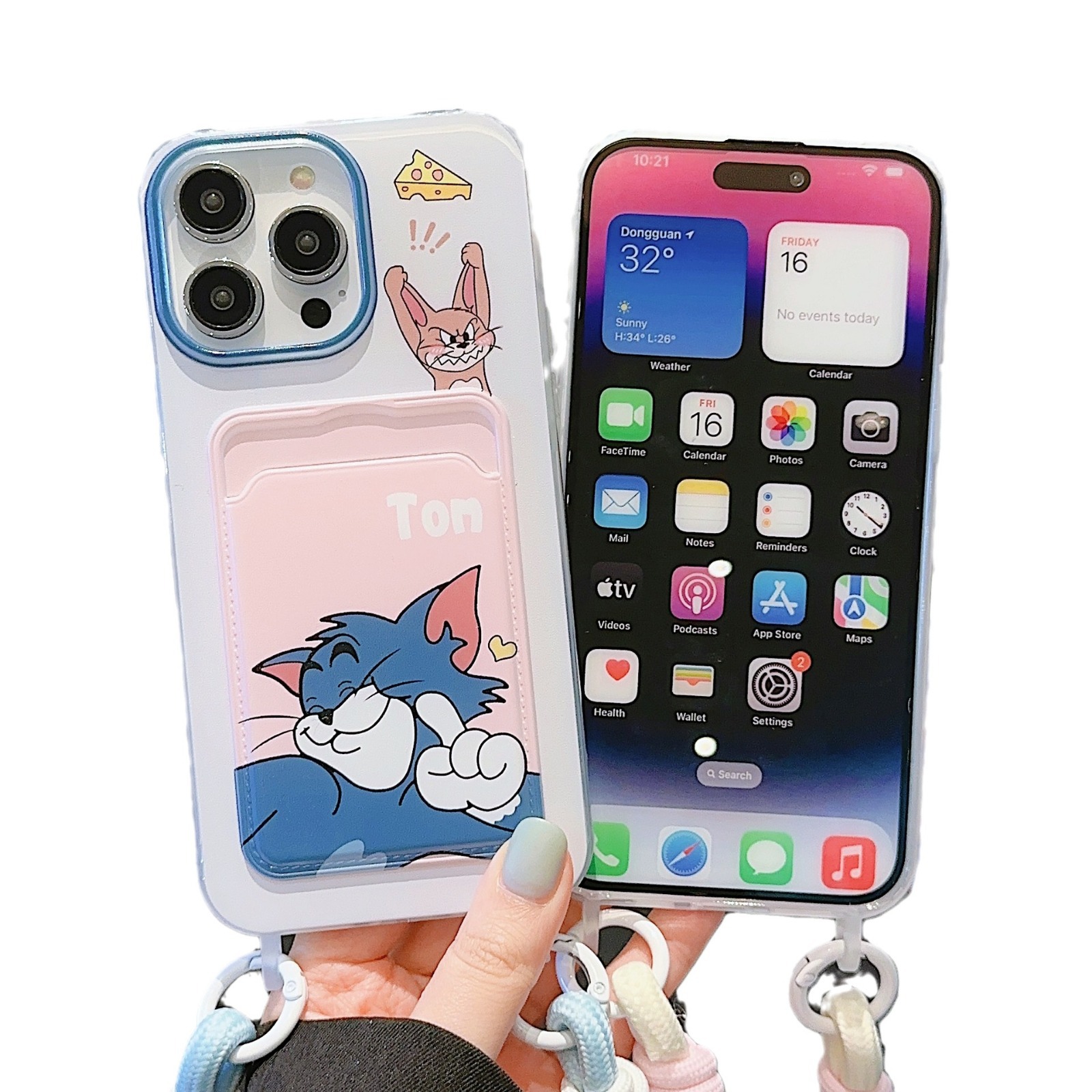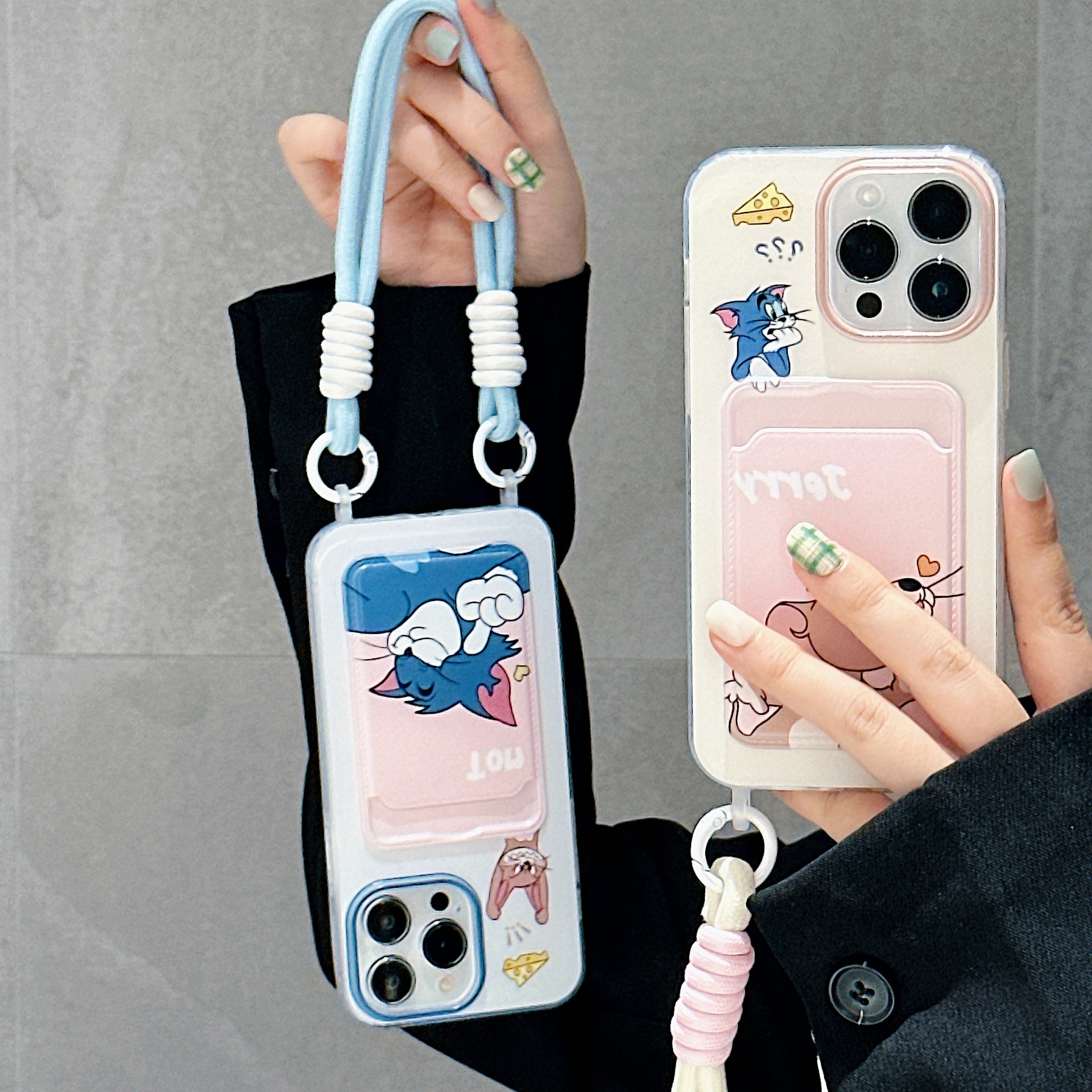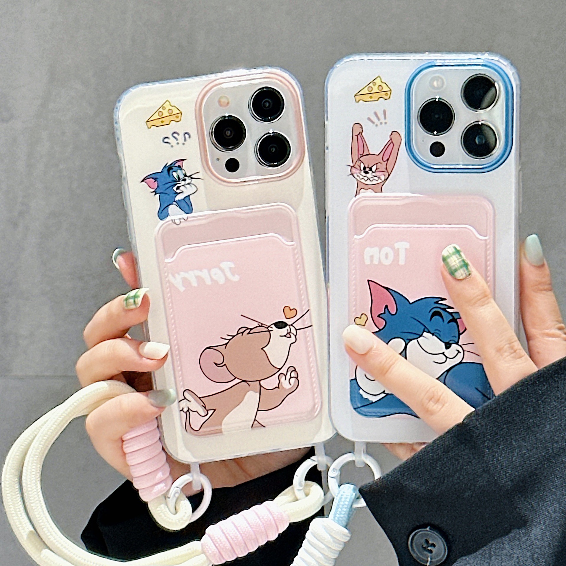 可爱猫和老鼠卡包适用iPhone16PROMAX手机壳14苹果15卡通11挂绳13